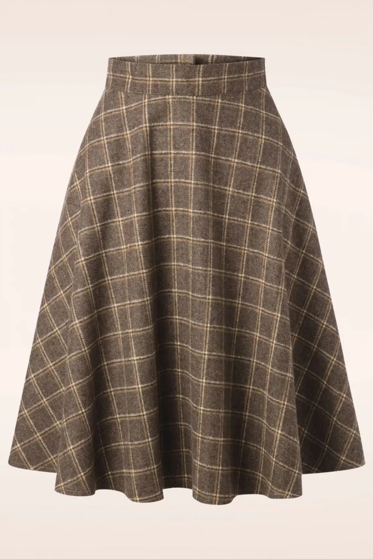 Voelje Een Echte Classy Lady In Deze 40S Another Fab Swing Skirt In Brown! Je Draagt Haarhoog In De Taille Wat Samen Met De Volle Swing Rok Zorgt Voor Een Vrouwelijkvintage Silhouet. Uitgevoerd In Een Zachte, Dikkere En Warme, Soepele Lichtbruine Stof (Stretcht Niet!) En Een Klassiek Ruitpatroon In Beige.Doordat Ze Volledig Gevoerd Is Kriebelt Ze Gelukkig Niet Aan Je Benen 😉 Je Garderobe Kan Vast ‘Another Fab Swing Skirt’ Gebruiken!