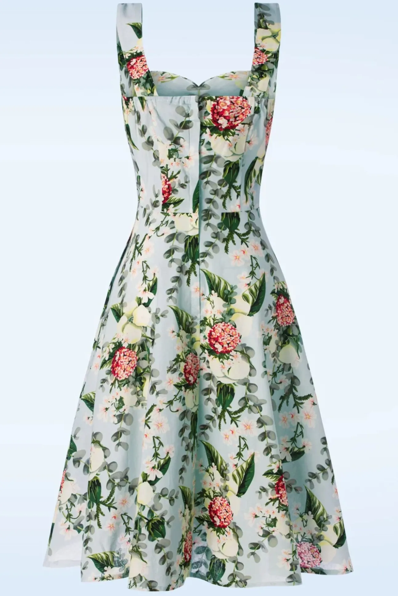 Je Bloeit Helemaal Op In Deze Swing Beauty! Uitgevoerd In Een Luchtige Lichtblauwe Katoen (Stretcht Niet) Met Een Print Van Bloemen.