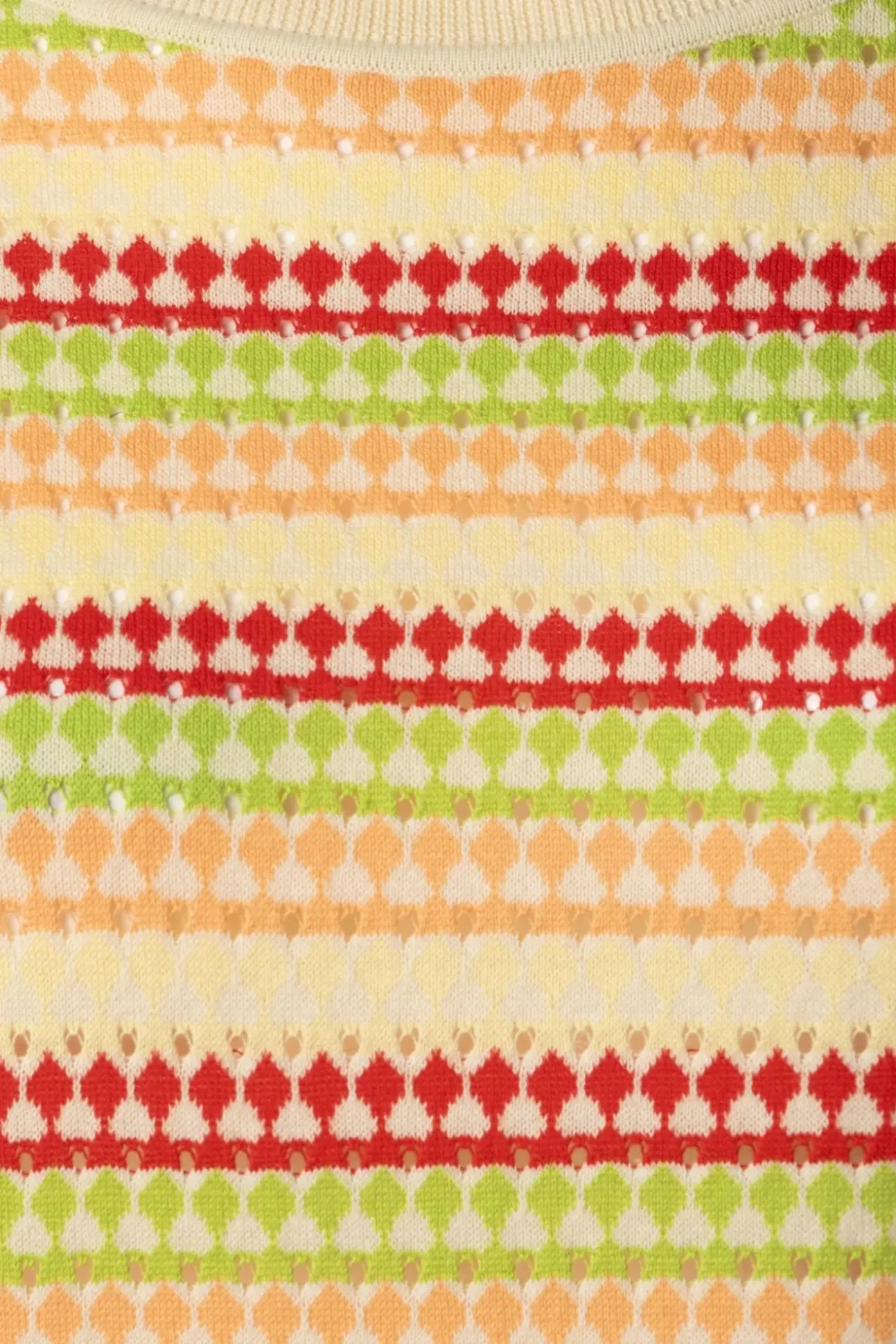 Hoe Mooi Is Deze Knitted Cutie?! Ze Is Uitgevoerd In Een Soepele En Stretchy, Fijn Gebreide, Opengewerkte, Kleurrijke Bio Katoen Die Heerlijk Draagt. “Preppy But Cute, Just The Way We Like It!”