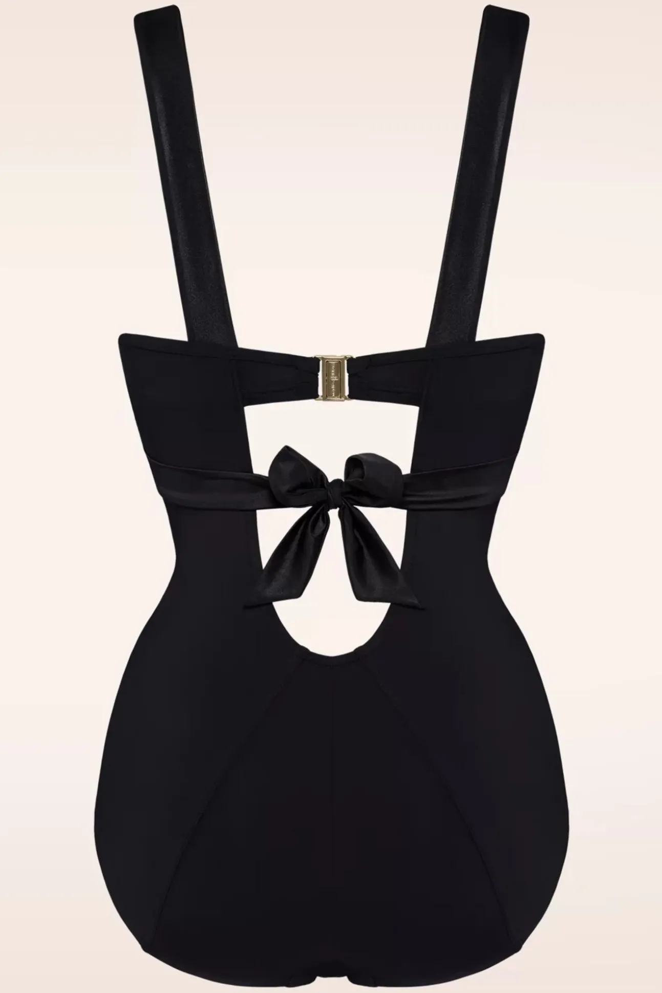 ”The Beach Will Be Your Runway This Summer!” Vergeet Die ‘Flashing Lights’… Zon, Zee En Strand Is Alles Wat Jij Nodig Hebt Om Te Shinen In Deze 50S Cache Coeur Plunge Balcony Bathingsuit In Black! De Matzwarte Stof Contrasteert Met De Glanzende Zwarte Stof En Geeft Dit Badpak Een Sensuele, Luxueuze Uitstraling. De Bredere Schouderbandjes Bieden Extra Comfort En Zijn Afgewerkt Met Classy, Goudkleurige Details. De Voorgevormde Cups Geven Je Borsten Net Dat Beetje Extra Steun En Zorgen Voor Een Droom Decolleté. Maar Ook De Achterkant Mag Gezien Worden Dankzij Het Opengewerkte Gedeelte Met Speels Strikdetail… Oh La La! Uitgevoerd In Een Luxe, Dubbele, Stretchy Stof Die Heerlijk Draagt En Perfect Aansluit. Vergeet Vooral Niet Sensueel Over Je Schouder Te Kijken Als Je Van Je Strandbedje Naar De Zee Loopt… Geef Het Publiek Wat Ze Willen! 😉