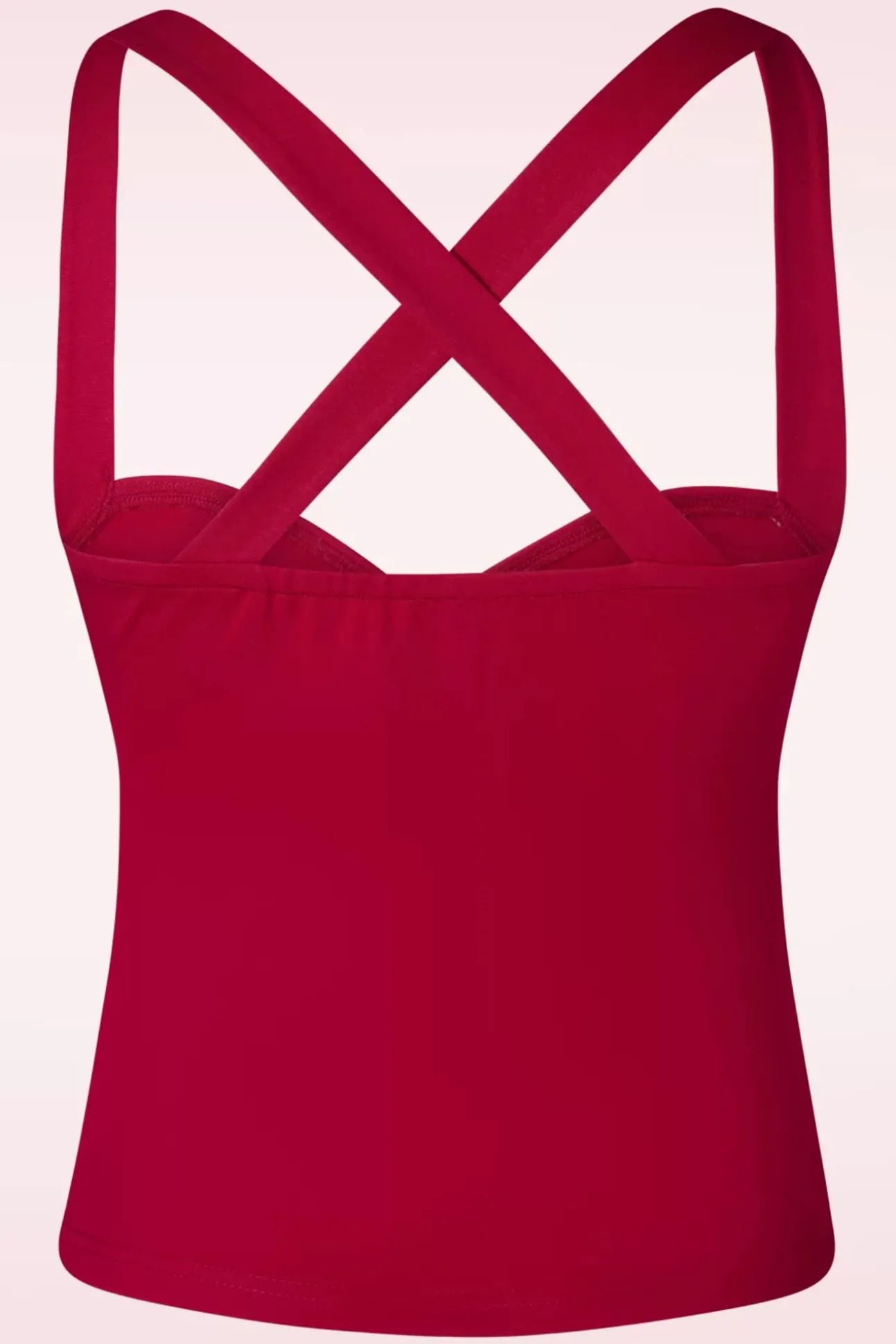Indeze 50S Cindy Cross Back Top In Red Ben Jij Een Echte Femme Fatale! Ze Heeft Een Sweetheart Halslijn En Schouderbandjes Die Speels Kruisen.Uitgevoerd In Een Soepele En Stretchy, Rode Stof Die Heerlijk Draagt. Sexy En Super Vrouwelijk, Wat Wil Je Nog Meer?!