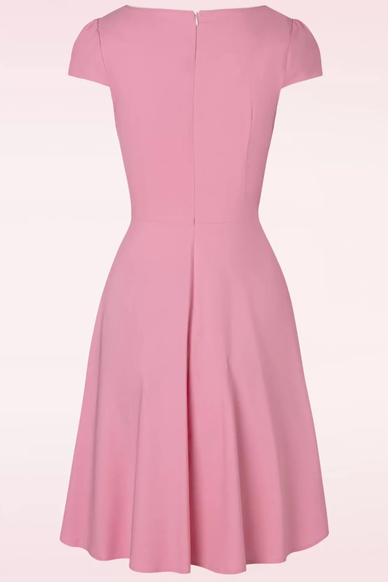 Ga Voor Een Oogverblindende Look Met Deze Connie Swing Dress In Baby Pink! Deze Flared Dress Is Voorzien Van Gepofte Kapmouwtjes, Speelse Opengewerkte Details Bij De Halslijn En Contrasterende Witte Biezen. Vanaf De Taille Loopt Ze Uit In Een Flowy Swing Rok Met Handige Steekzakken. Uitgevoerd In Een Super Comfortabele, Stretchy, Babyroze Bengaline Stof Die Heerlijk Draagt. Deze Dress Zal De Binnenkant Van Je Kast Dan Ook Weinig Gaan Zien! 😉