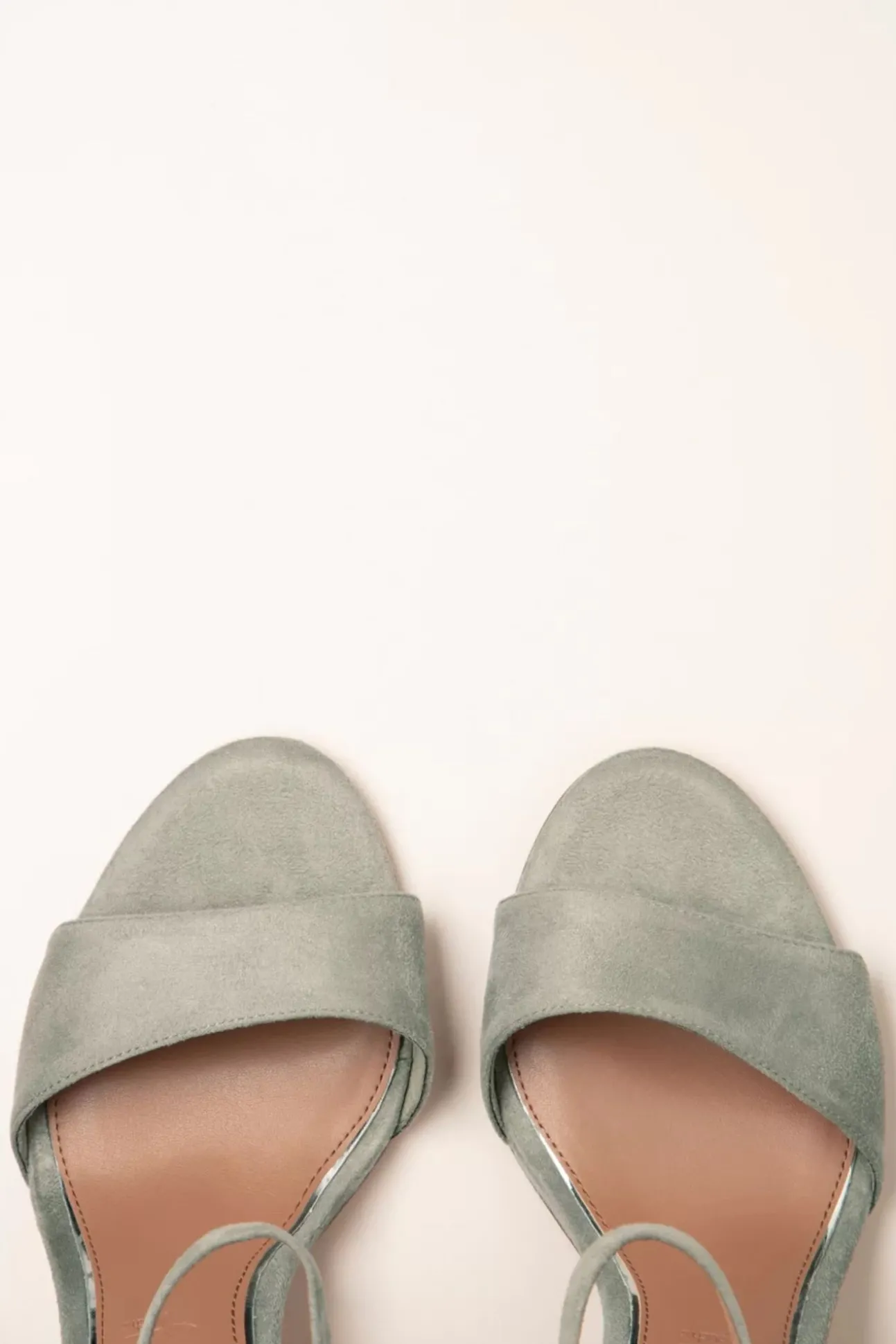 Nieuwe Lente/Zomercollectie ~ ”Feet, Meet Your New Best Friends!” Deze Sandaaltjes Zijn Uitgevoerd In Licht Saliegroen Vegan Suède Met Een Blokhak Voorzien Van Een Gevlochten Patroon In Beige.