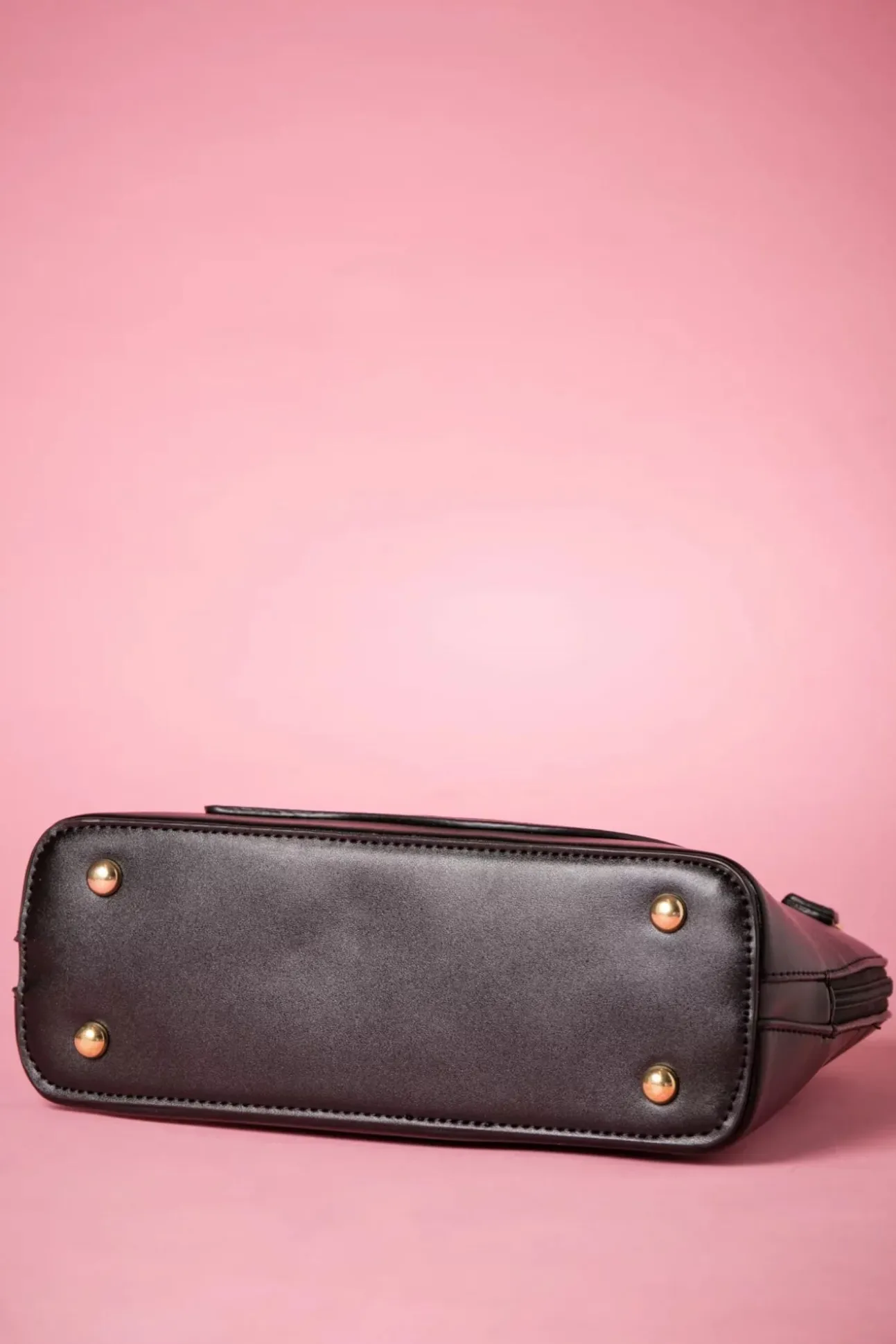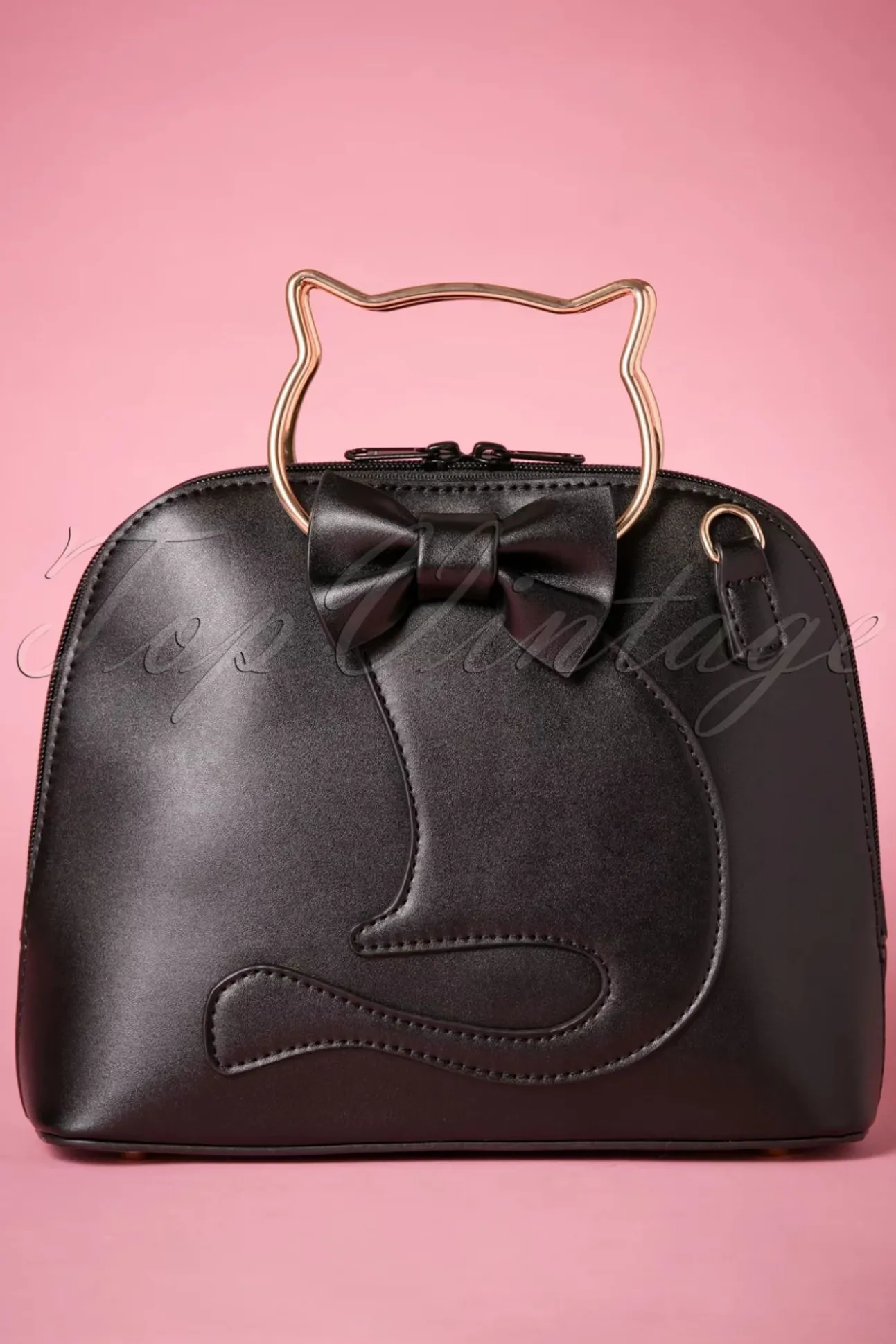 Een Kat In De Zak Kopen?! Nee, Want Van Deze 50S Dixie Cat Bag In Black Krijg Je Zeker Weten Geen Spijt! Deze Handtas Is Uitgevoerd In Stevig Zwart ‘Faux’ Leder, Met Aan De De Voorkant Een Kat Applicatie Voorzien Van Een Schattige Strikje, Afgewerkt Met Goudkleurige Handvatten Die De Kop Van De Kat Voorstellen… Purrrfection! Deze Tas Wordt Bovendien Geleverd Met Een Afneembare Goudkleurige Schakelketting Waardoor Je Haar Op Meerdere Manieren Kunt Dragen. Zie Jij Jezelf Al Lopen Met Deze Kittige Tas Aan Je Arm?