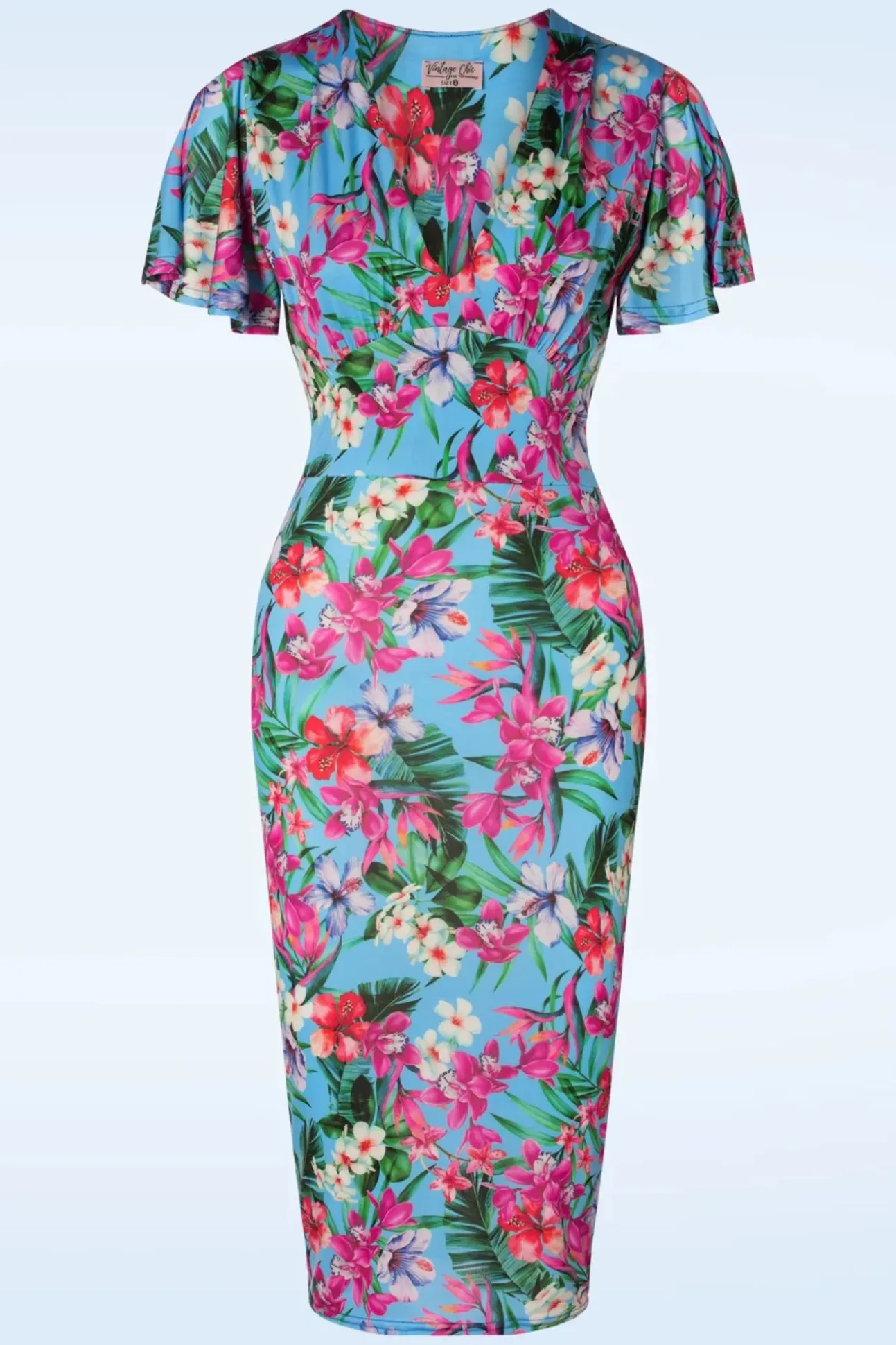 Nieuwe Collectie ~ Het Wordt Een Tropische Zomer Met Dory In Je Jurkencollectie! Uitgevoerd In Een Soepele En Stretchy, Licht Glanzende, Aquablauwe Stof Voorzien Van Kleurrijke, Tropische Bloemen. ”Let’s Get Tropical!”