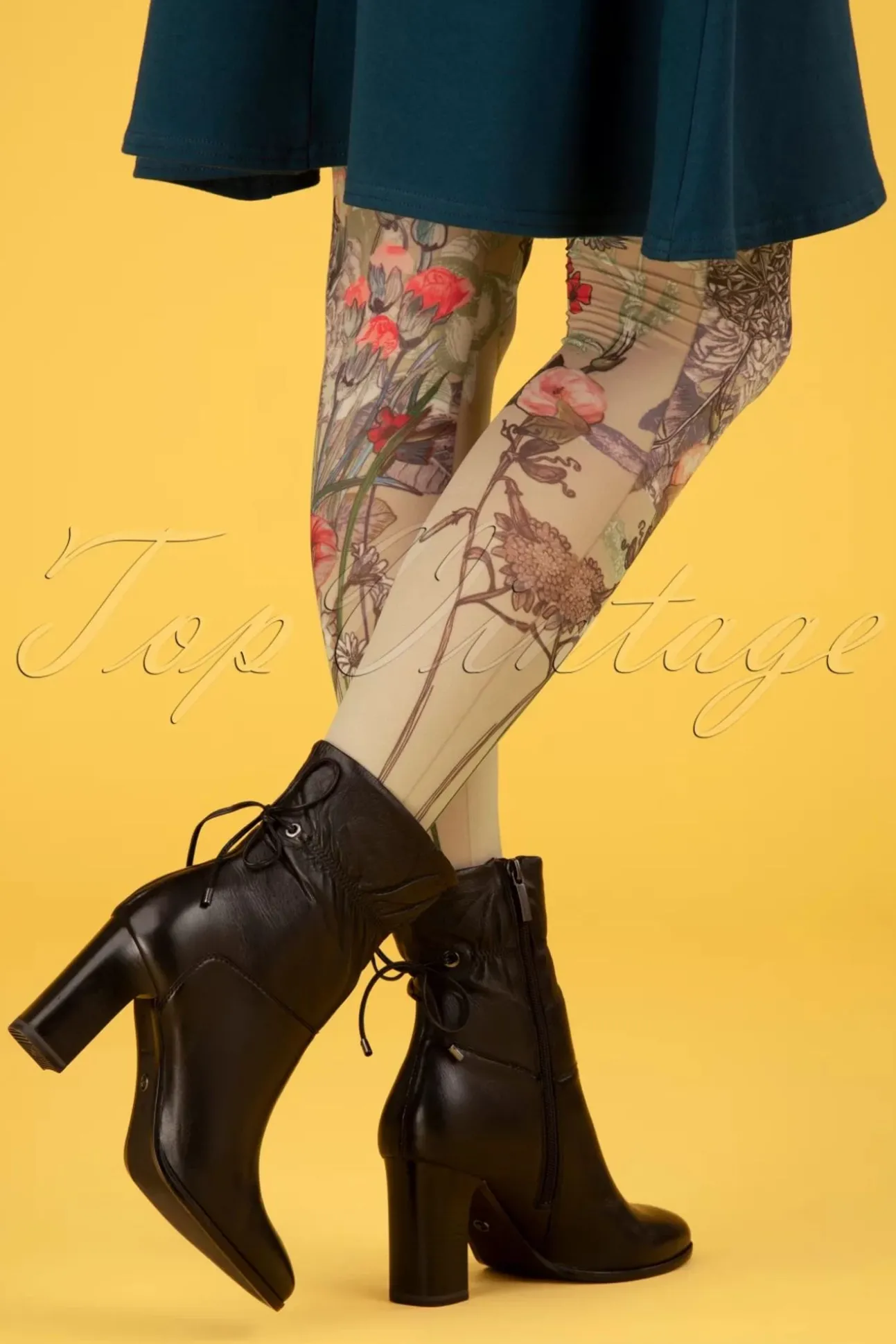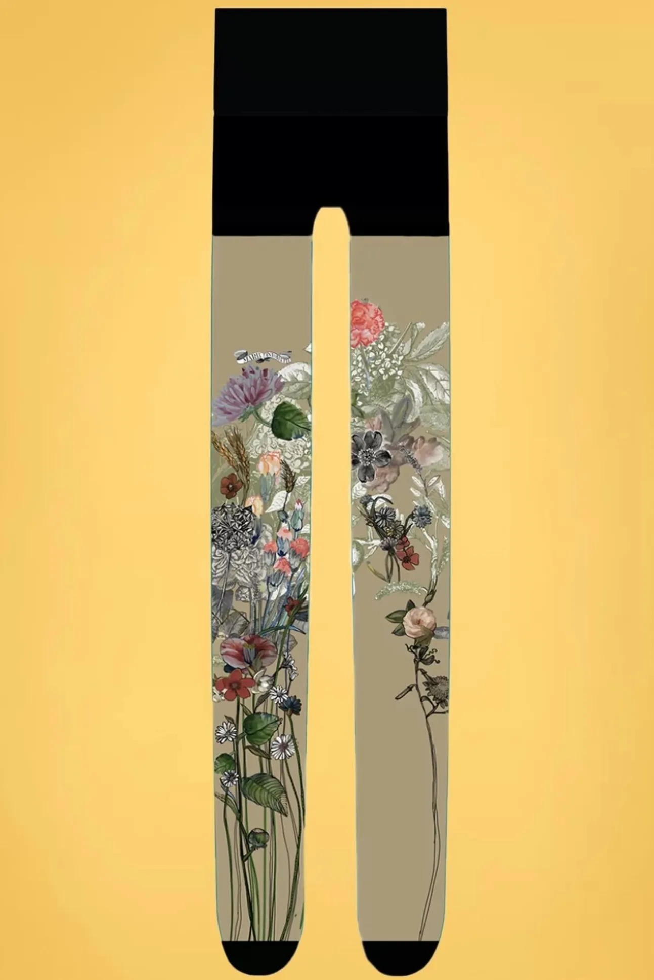 Ze Worden Met Liefde En Passie Ontworpen En Bedrukt In Een Atelier In De Buurt Van Lyon En Zijn Dan Ook Echte Kunstwerkjes Aan Je Benen! Draag Deze 50S Dragées Panty In Beige En Groen Uit De ‘Que La Fête Commence’ Collectie Van Ons Nieuwe Merk Marie Antoilette En Bloei Helemaal Op! Deze Lichtbeige Panty Is Voorzien Van Een Levendige En Kleurrijke Bloemenprint, Zitten Heerlijk Comfortabel Om Je Benen En Stretchen Goed Mee. ”Bloom Baby, Bloom!”