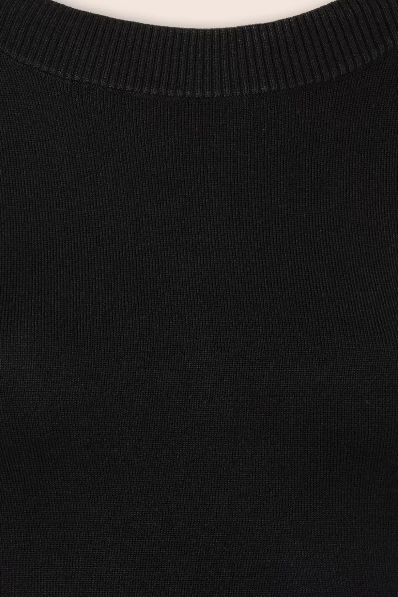 Deze Dreamy Jumper In Black Is Tijdloos, Elegant En Overal Mee Te Combineren! Ze Heeft Een Klassieke Boothals En Flatterende 1/2 Mouwen Afgewerkt Met Ribboord. Uitgevoerd In Een Heerlijke Soepele, Stretchy Zwarte Viscosemix Die Zijn Perfecte Pasvorm Zal Blijven Behouden, Zelfs Na Een Aantal Wasbeurten. Een Veelzijdige Classy Top Die Niet Mag Ontbreken In De Kast Van Iedere Vintage Lady!