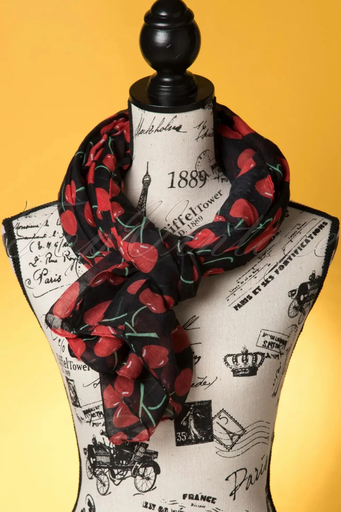 Deze Shawl Is Als De Kers Op De Taart! Uitgevoerd In Zwart, Zacht Viscose Met Een Sappige Rode Kersenprint.