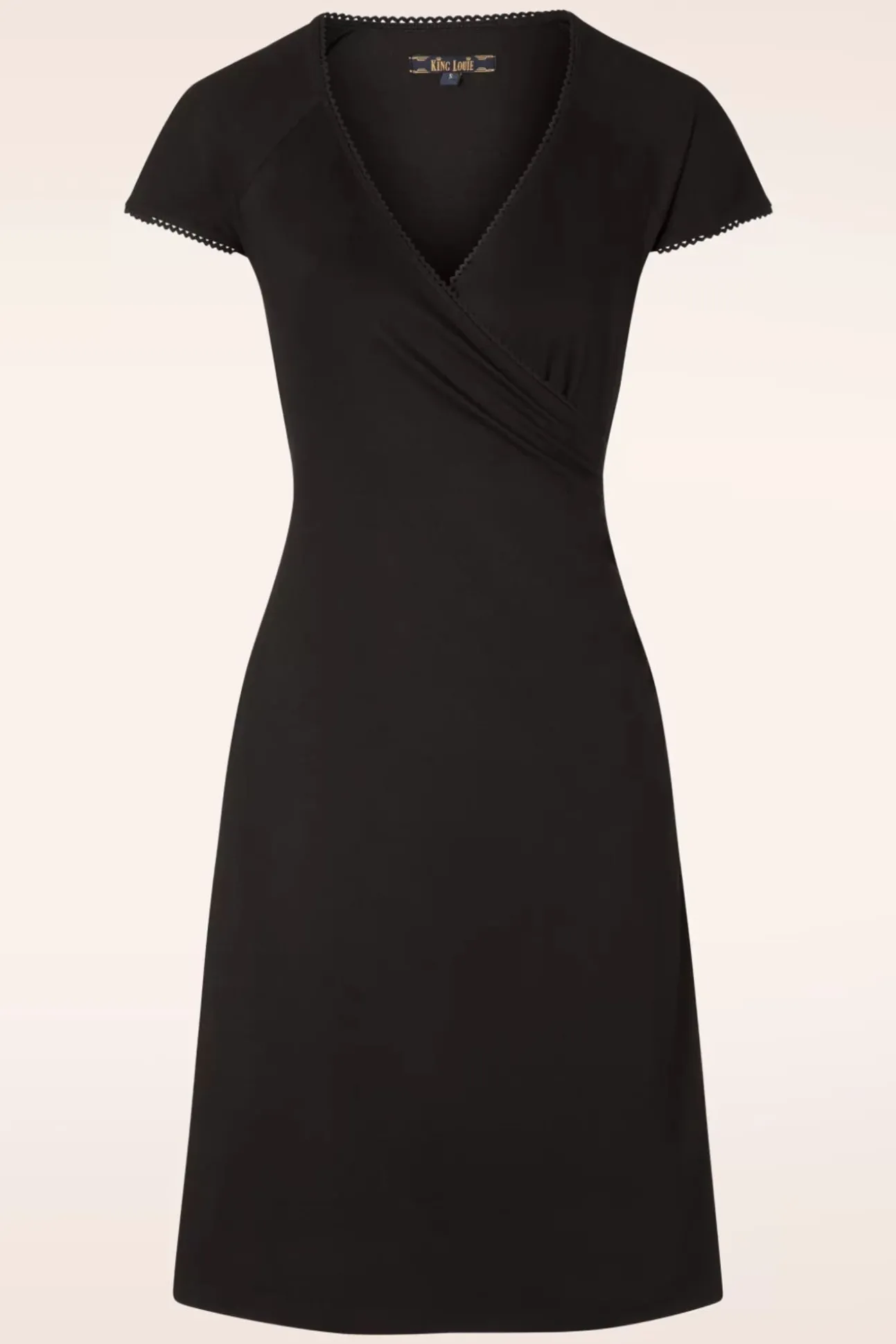 De 60S Ecovero Classic Cross Dress In Black Is Een Ware King Louie Klassieker Die Niet In Je Garderobe Mag Ontbreken! De Aansluitende Top Heeft Kapmouwtjes En Een Mooie Overslag Die Zowel Bij Een Volle Als Een Bescheiden Boezem Een Prachtig Decolleté Laat Zien. Super Flatterend Voor Je Figuur Dankzij Het Speelse A-Lijntje En De Plooitjes Aan De Zijkant Waardoor Eventuele Buikprobleempjes Verdoezeld Worden. Uitgevoerd In Een Soepele En Stretchy, Zwarte Viscosemix Die Heerlijk Draagt. Must-Have!