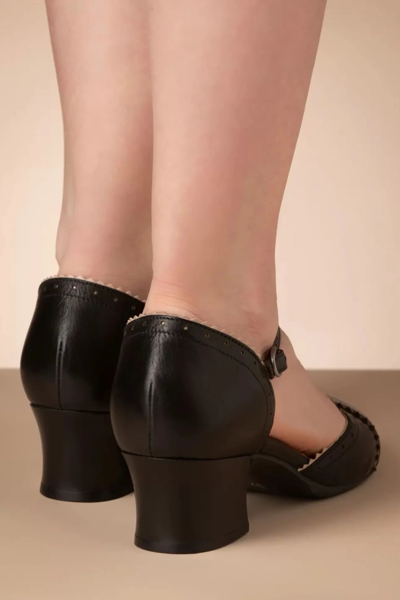 Stap Stijlvol Het Nieuwe Seizoen In Met Deze T-Strap Pumps! Uitgevoerd In Kwalitatief Hoogwaardig Leder In Zwart, Met Crèmekleurige Biesjes.