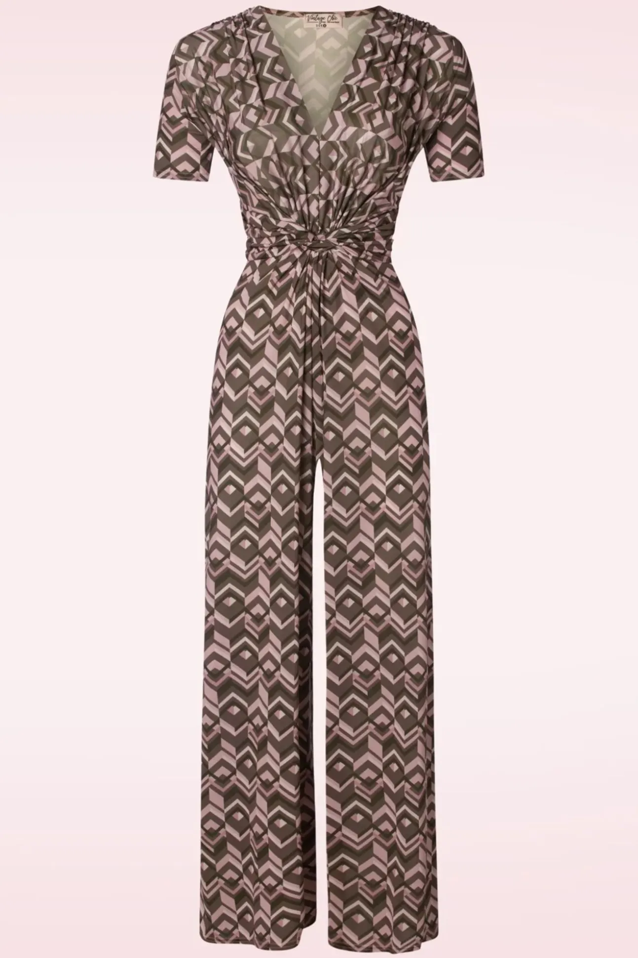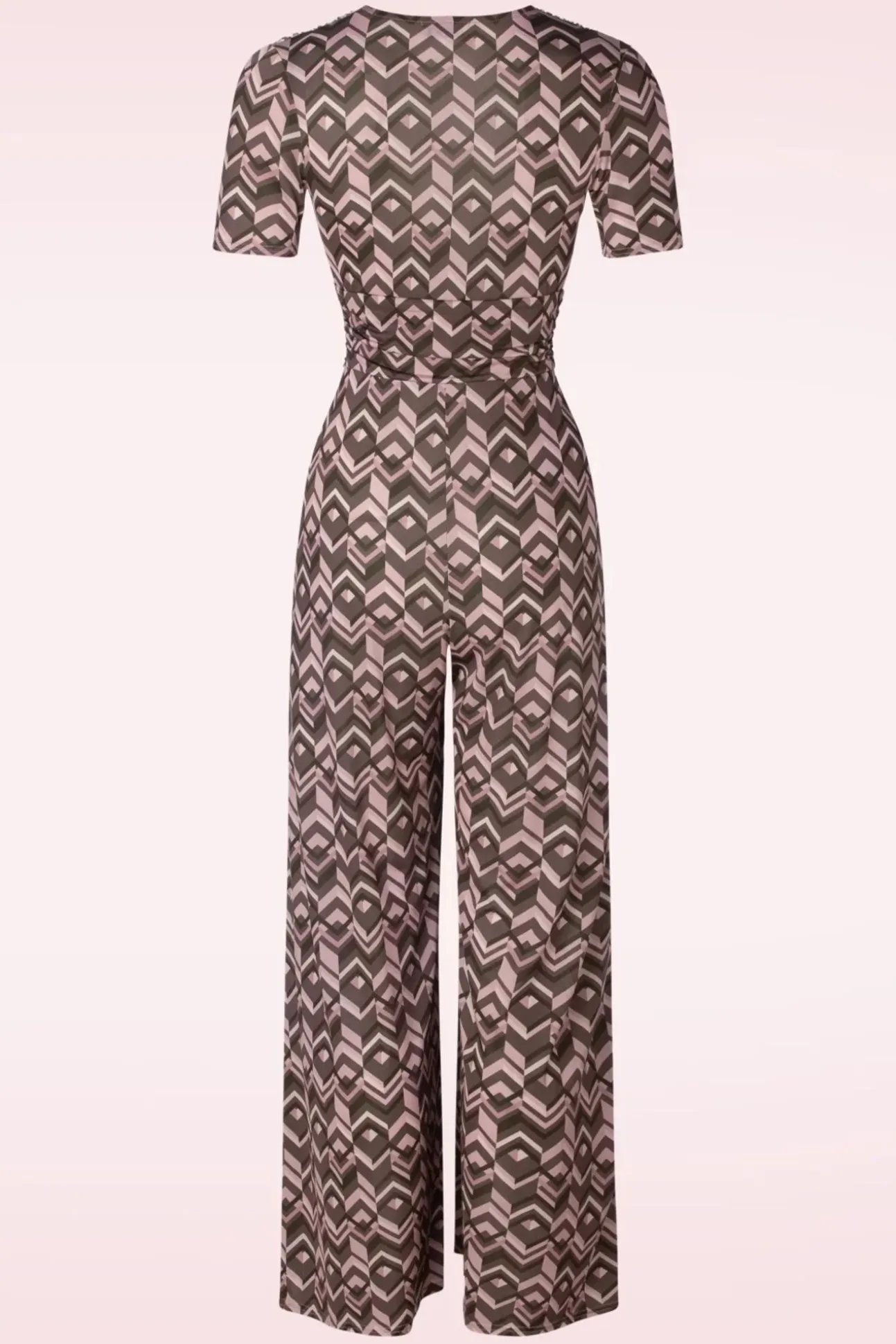 Nieuwe Collectie ~ ”Go For Gina!” Deze Jumpsuit Neem Je Probleemloos Óveral Mee Naartoe… Ze Is Namelijk Uitgevoerd In Een Soepele En Stretchy, Slinky Stof Met Een Lichte Glans En Voorzien Van Een Geometrische Print In Bruin En Roze.