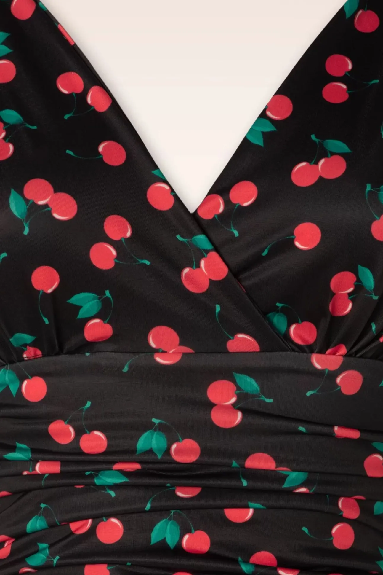 Nieuwe Collectie ~ In Deze Grecian Jurk Blijf Je Niet Onopgemerkt! De Top Heeft Zowel Aan De Voor- Als Achterzijde Een Diepe V Met Mooie Overslag Waardoor Je Een Sexy Decolleté Laat Zien, Oh La La! De Licht Geplooide Cups Lopen Door In Brede Schouderbandjes Met Een Speels Strikdetail Op De Schouder. Uitgevoerd In Een Glad, Soepel En Stretchy, Zwart Slinky Stofje Dat Bezaaid Is Met Sappige Kersjes En Heerlijk Draagt. ”You’Re The Cherry On Top!”