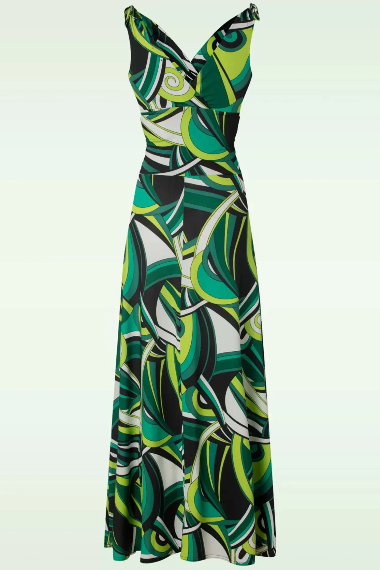 Nieuwe Collectie ~ ‘Go Get Your Groove On’ In Deze Geweldige Maxi Jurk! Uitgevoerd In Een Soepel, Stretchy Slinky Stofje Met Een Fantastische Retro Print In Zwart, Wit- En Groentinten Die Heerlijk Draagt En Niet Kreukt.
