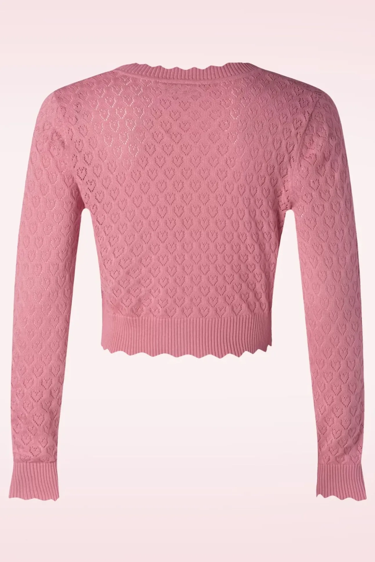 Liefde Is… Deze Cardigan! Ze Heeft Een Reeks Hartjesknopen En Is Uitgevoerd In Een Fijn Gebreide, Stretchy, Lichtroze Viscose-/Katoenmix Met Een Fantastisch Opengewerkt Hartjespatroon Voor Een Heerlijk Draagcomfort. Ben Jij Al Verliefd?