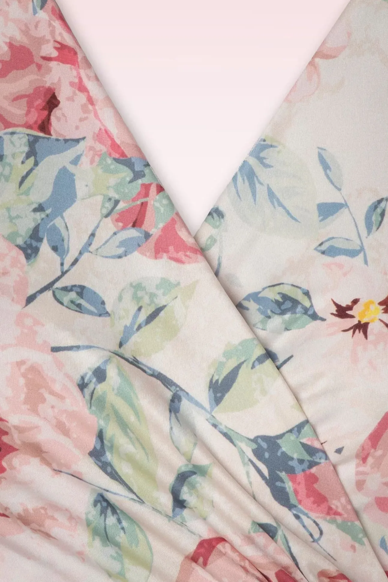 Hoe Mooi Is Deze 40S Irene Flower Cross Over Swing Dress In Silky Cream?! Ze Laat Je Op En Top Vrouw Voelen Door De Prachtige Aansluitende Overslag Top Met Een Sexy V-Halslijn, Speelse Strikbandjes Die Je Zowel Los Als Gestrikt Kunt Dragen En Haar Flatterende Plooien In De Taille. De Zwierige Vlindermouwtjes Geven Haar Een Flirty Touch Terwijl De Flatterende Semi-Swing Rok Zorgt Voor Een Flinke Portie Elegantie, Wow! Ze Is Uitgevoerd In Een Glad En Soepel, Licht Glanzend, Crèmekleurig, Stretchy Stofje Bezaaid Met Prachtige Roze Rozen, Dat Garant Staat Voor Veel Kreukvrij Draagplezier. Irene Is Liefde, Pure Jurken-Liefde!