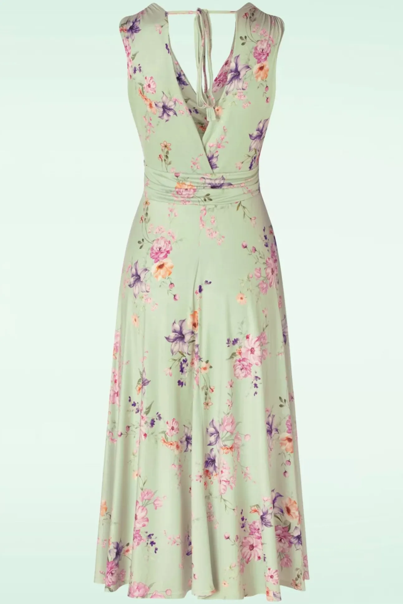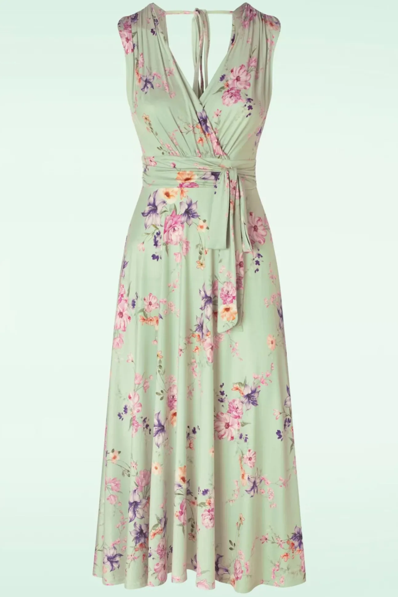 Wanneer Je Jane Aantrekt Weet Je Het Meteen; Ze Is Perfect En Vintage Romantiek Ten Top! Uitgevoerd In Een Glad En Soepel, Licht Glanzend, Stretchy, Lichtgroen Slinky Stofje Met Een Prachtige Bloemenprint, Dat Garant Staat Voor Veel Kreukvrij Draagplezier.