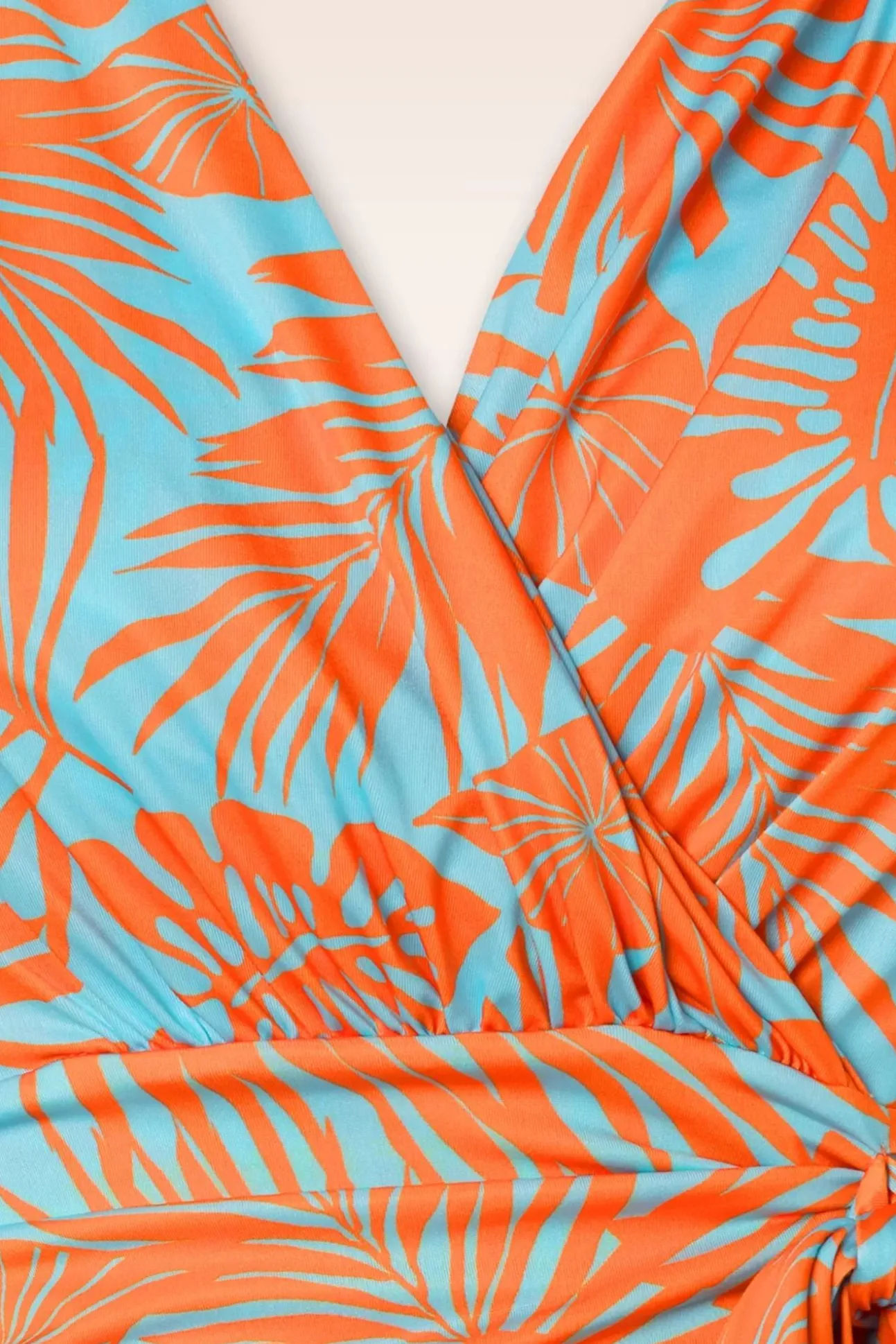 Nieuwe Collectie ~ Wanneer Je Jane Aantrekt Weet Je Het Meteen; Ze Is Perfect Voor De Zomer! Uitgevoerd In Een Glad En Soepel, Licht Glanzend, Stretchy, Lichtblauw Slinky Stofje Met Een Oranje Bladerenprint, Dat Garant Staat Voor Veel Kreukvrij Draagplezier.