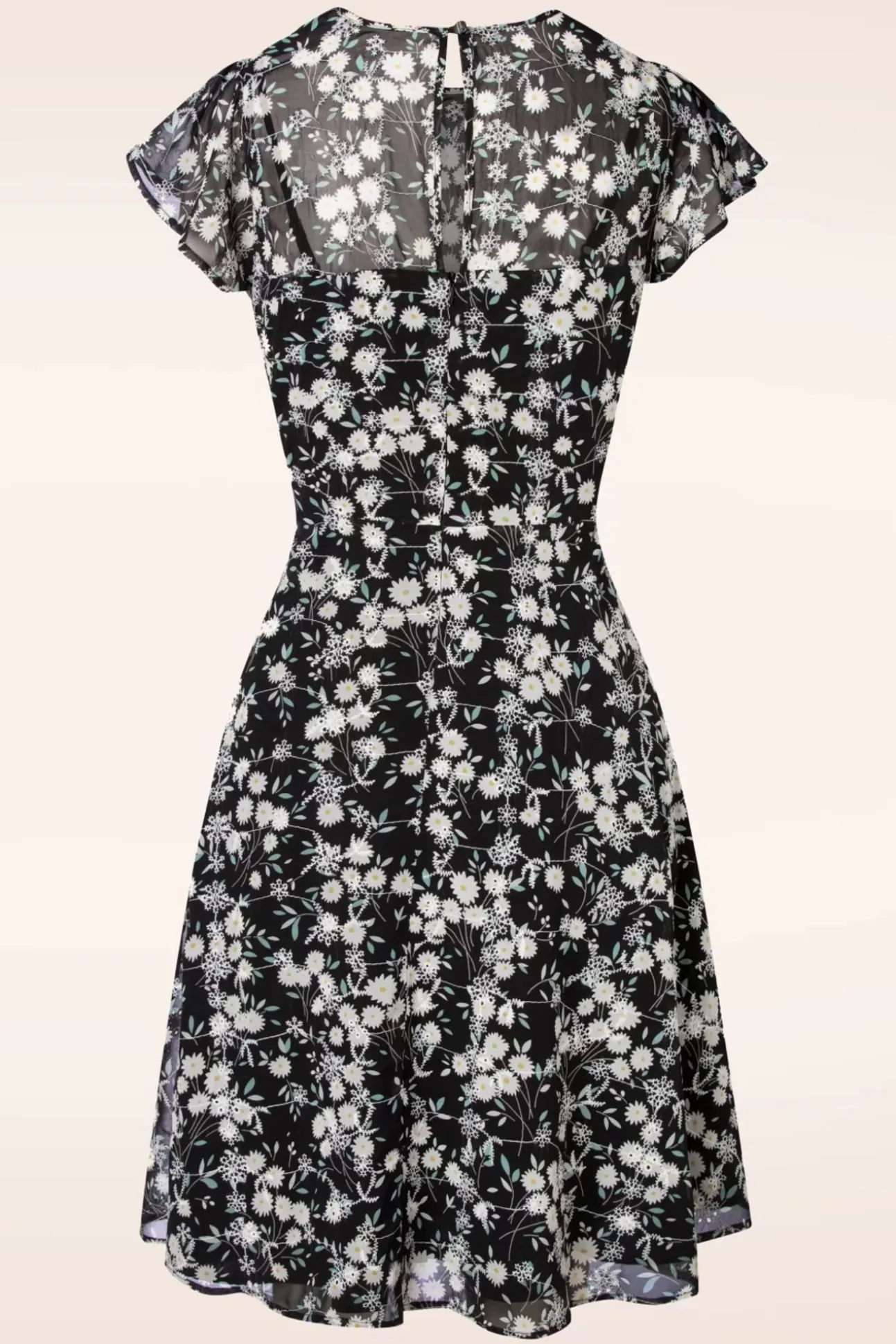 ”Time To Bloom!” Deze Keri Floral Flare Dress In Black Heeft Een Ronde Halslijn Met Een Subtiele Keyhole Met Striksluiting, Schattige Vlindermouwtjes En Vanaf De Taille Waaiert Ze Uit In Een Zwierige Semi-Swing Rok. Uitgevoerd In Een Heerlijk Soepele, Doorzichtige Zwarte Stof (Stretcht Niet) Met Een Print Van Lieflijke Bloemetjes En Voorzien Van Een Vast Onderjurkje Voor Extra Comfort En Om Doorschijnen Te Voorkomen. Zet De Bloemetjes Buiten In Deze Beauty!