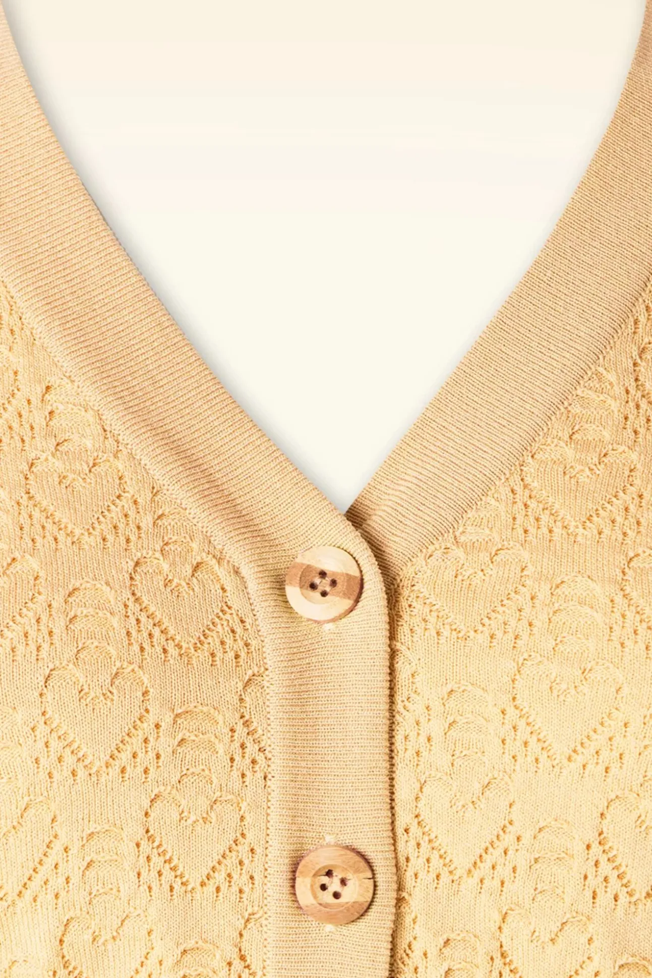 Liefde Op Het Eerste Gezicht! Deze Cute Cardigan Is Uitgevoerd In Een Zachte, Fijn Gebreide Viscosemix In Geel En Is Voorzien Van Een Hartjespatroon. Begint Jouw Hartje Ook Al Sneller Te Kloppen? 😉