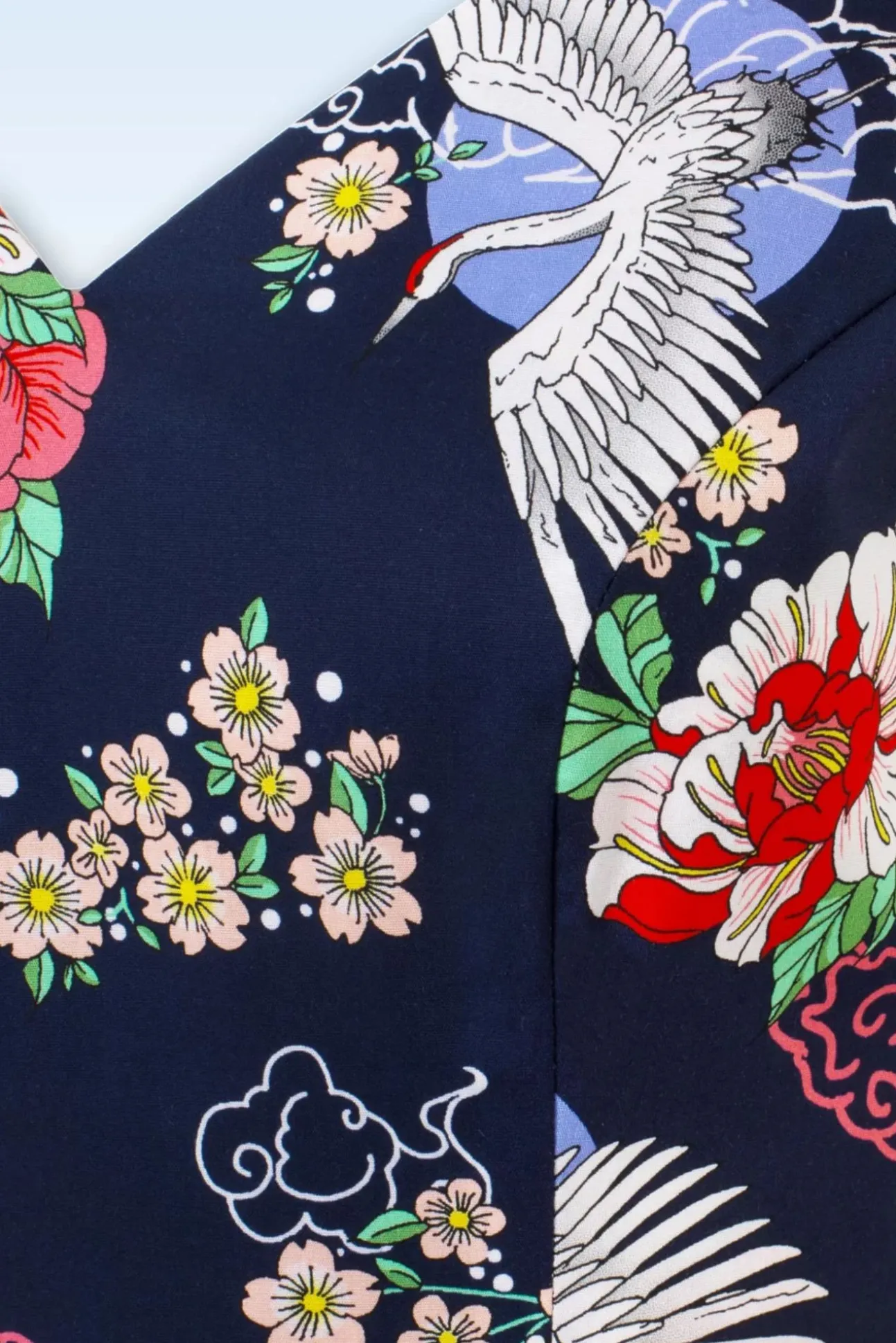 Nieuwe Lente/Zomercollectie ~ ”Cranes Symbolize Happiness And Eternal Youth!” Ze Is Uitgevoerd In Een Luchtige En Soepele Marineblauwe Katoenmix Voorzien Van Een Aziatisch Geïnspireerde Print Met Bloemen En Kraanvogels. ”Happiness Looks Good On You!” 😉