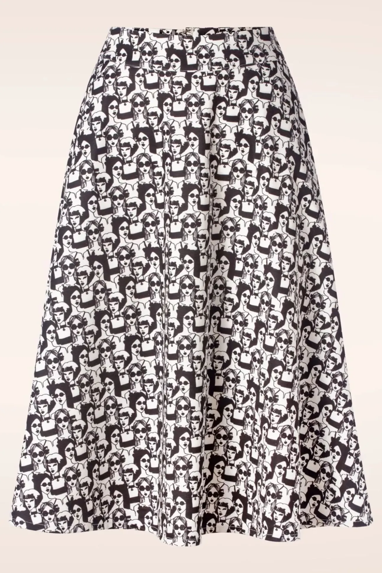 ”Life Is A Fashion Show And The World Is Your Runway!” Deze Stijlvolle Swing Rok Is Uitgevoerd In Een Ietwat Dikkere Maar Soepele, Stretchy Ivoorwitte Stof Die Heerlijk Draagt Met Een Opvallende Zwarte Print Van Fashion Girls Met Hun Typische ‘Je Ne Sais Quoi’ Attitude! ”This Is Your Moment, Own It!”