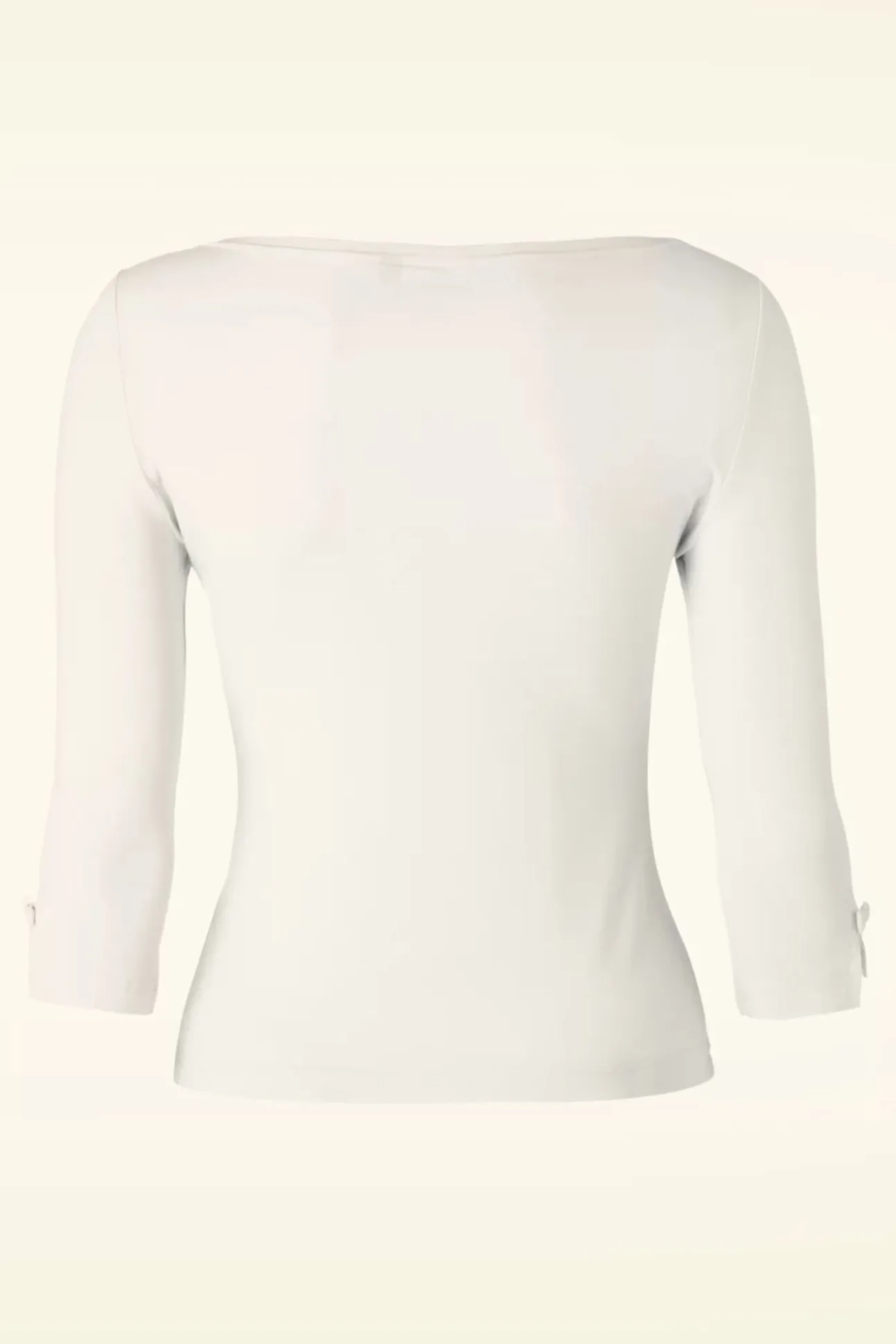 Elegant En Schattig Deze 50S Modern Love Top! Eenvoudig Maar Toch Speciaal Door De Lieflijke Details! De Top Heeft Een Mooie Boothals En Mouwtjes Met Splitjes Die Afgezet Zijn Met Kleine Strikjes, Só Cute! Uitgevoerd In Een Heerlijke Soepele, Stretchy Ivoorwitte Viscose Mix Die Zijn Perfecte Pasvorm Zal Blijven Behouden, Zelfs Na Een Aantal Wasbeurten. Een Veelzijdige Classy Top Die Niet Mag Ontbreken In De Kast Van Een Echte Vintage Lady 😉