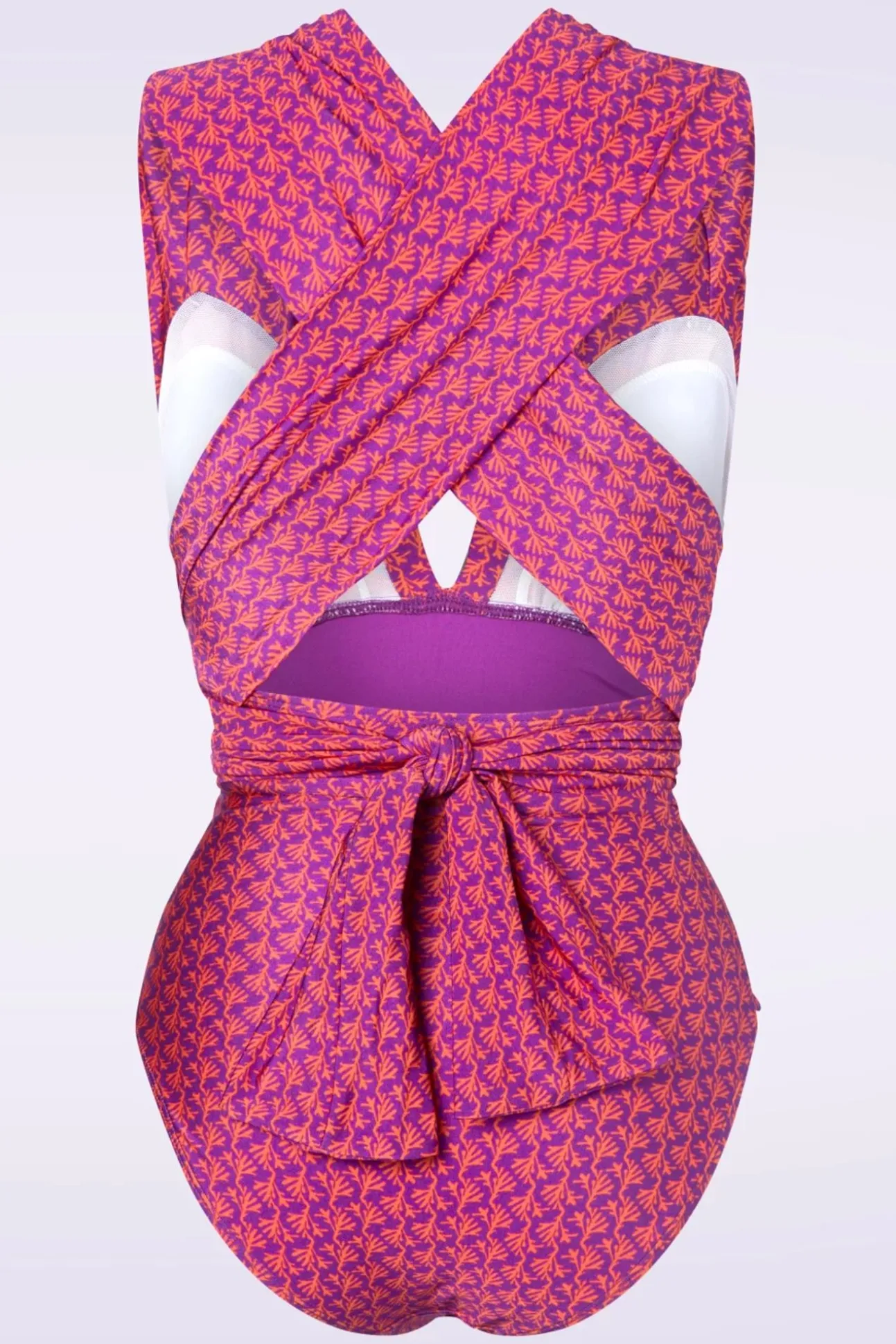 Nieuwe Lente/Zomercollectie ~ Waarom Voor Één Stijltje Kiezen Als Je Ook Deze Veelzijdige Beauty Kunt Dragen?! Naast Haar Veelzijdige, Fabulous Looks, Is Ze Uitgevoerd In Een Soepele En Stretchy, Gladde En Glanzende Paarse Stof Met Een Oranje Koraalprint, Die Je Rondingen Omarmt En Heerlijk Draagt.