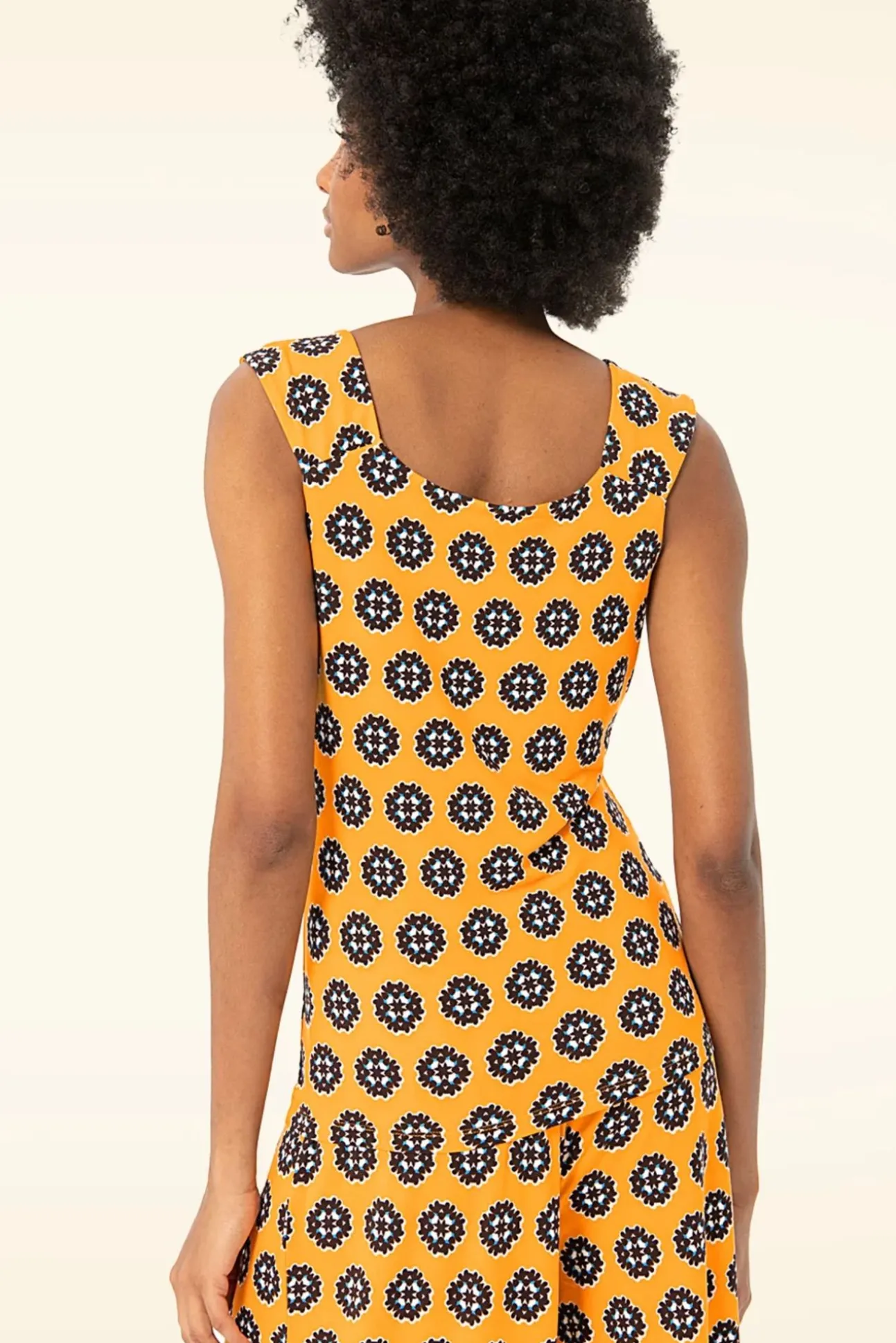 “Life Is Short… Buy The Top!” Deze Nylah Top Is Uitgevoerd In Een Zachte En Stretchy, Gele Bamboe Viscosemix Voorzien Van Een Grafische Printje In De Kleuren: Bruin, Blauw En Wit.