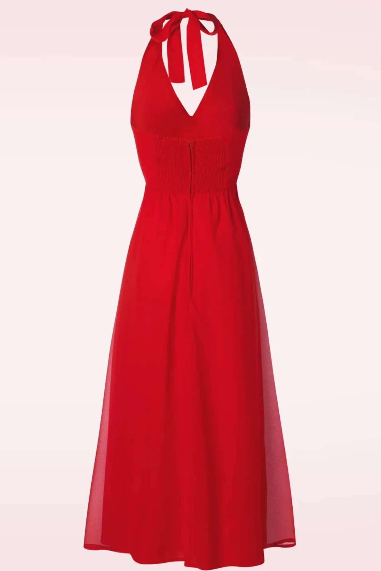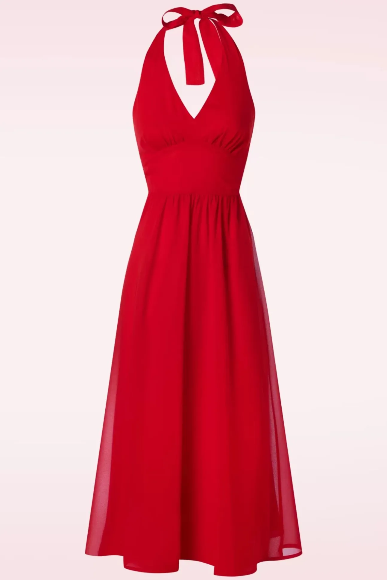 Nieuwe Lente/Zomercollectie ~ ”Who’s That Lady In Red?!” Ze Hebben Het Natuurlijk Over Jou Wanneer Je Deze Prachtjurk Draagt! Ze Heeft Een Geplooide Haltertop En Loopt Vanaf De Taille Uit In Een Zwierige Midi Rok. Uitgevoerd In Een Soepele En Luchtige, Lipstickrode Chiffon Stof En Is Gevoerd Voor Extra Comfort. Klaar Om Te Stralen?