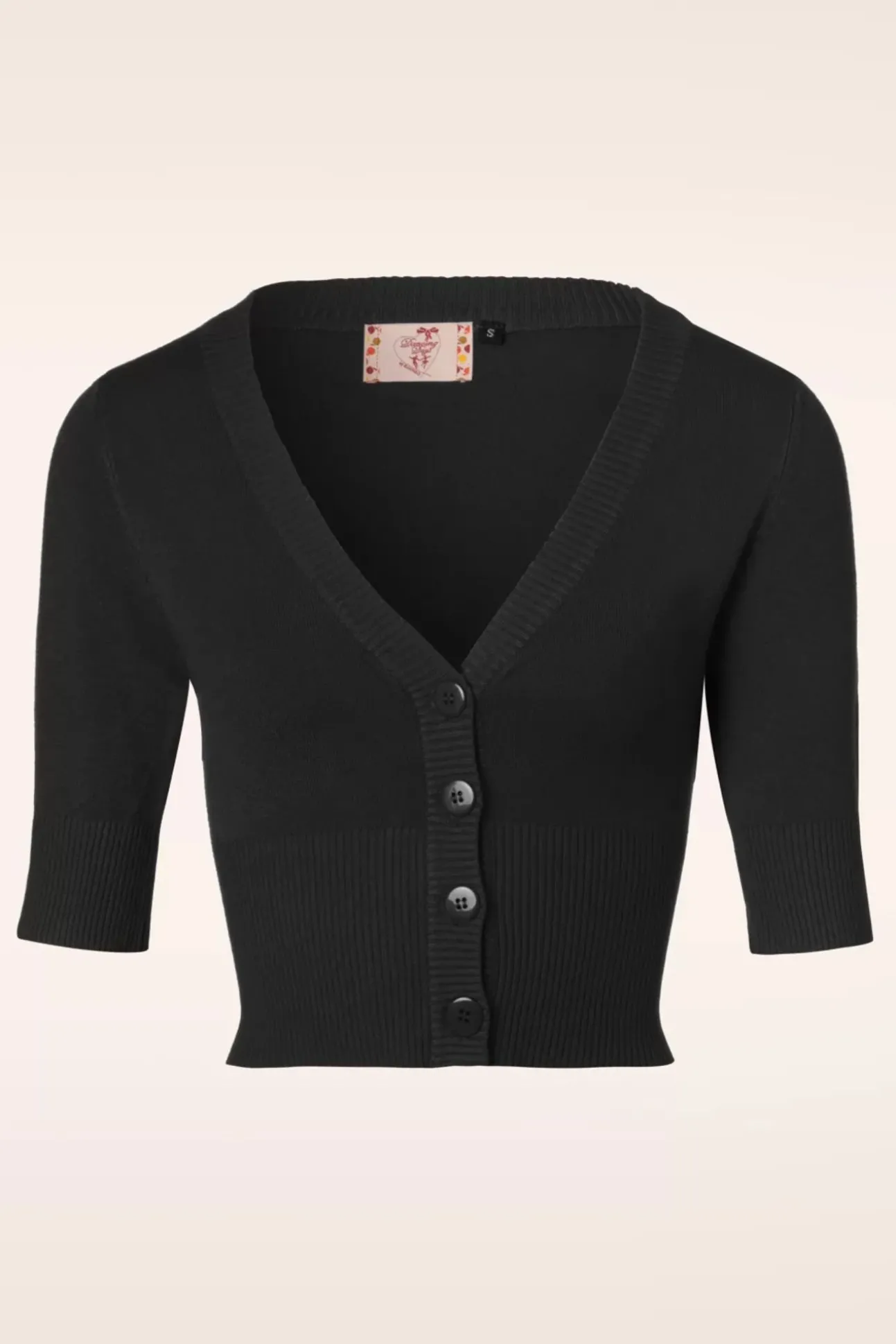 De 50S Overload Cardigan Is Een Echte Klassieker! Classy In Al Haar Eenvoud En Daardoor De Perfecte Match Met Al Jouw Vintage Kledingstukken! Deze Korte Cardi Heeft Een Elegante V-Halslijn, 1/2 Mouwen En Grote Glimmende Knopen. Uitgevoerd In Een Fijngebreide, Zwarte Viscosemix Met Een Heerlijke Stretch Voor Een Mooie Aansluitende Pasvorm. De Combinatiemogelijkheden Zijn Eindeloos!