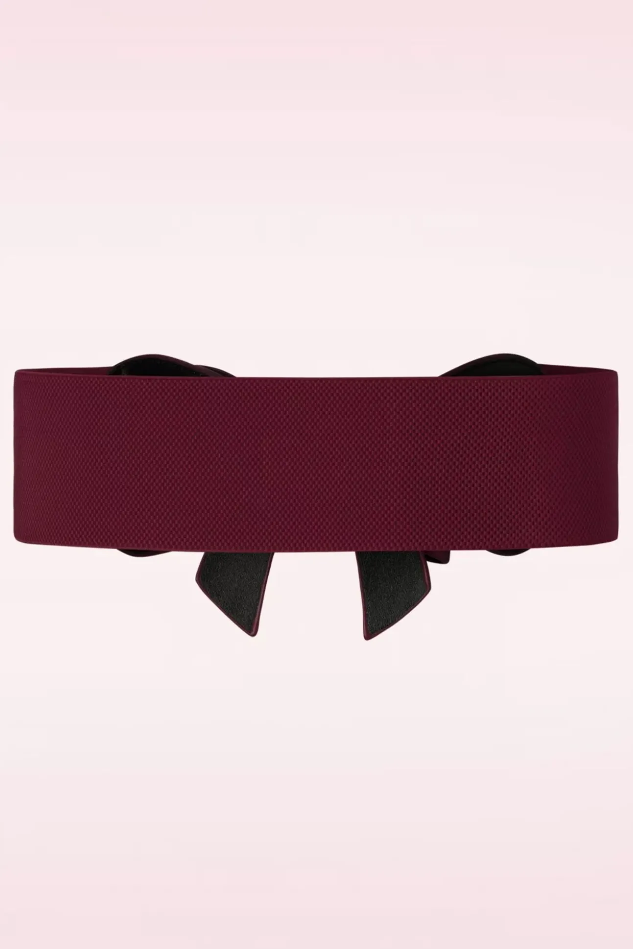 Deze Bordeauxrode Stretch Riem Creëert Een Wespentaille In Een Handomdraai! Voorzien Van Een Elastische Band En Een Strik Van Imitatie Leder.