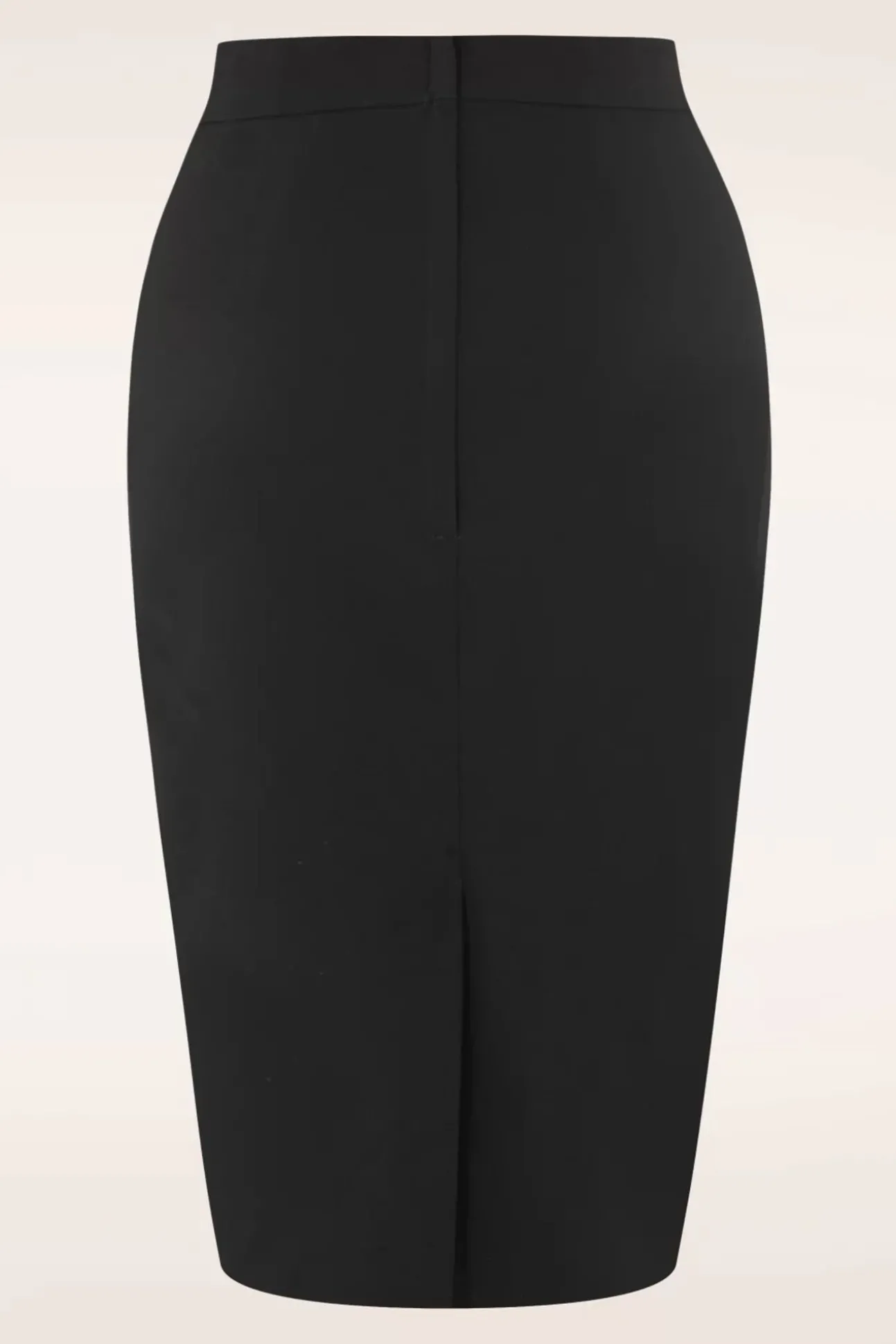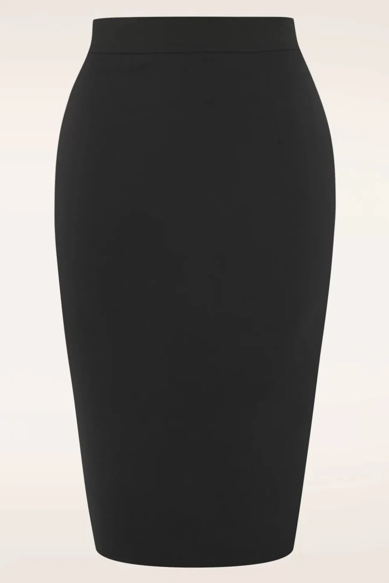 Deze 50S Polly Bengaline Skirt In Black Is Een Onmisbaar Item Voor Iedere Vintage Lover! Een Prachtig Hoog Aansluitend Taille Model Waardoor Iedere Vrouw Een Zandloper Figuurtje Krijgt, Oh La La! Uitgevoerd In Een Soepele En Stretchy, Zwarte Katoenmix Die Garant Staat Voor Héérlijk Draagcomfort En Een Ultieme Vintage Look & Feel. De Combinatiemogelijkheden Zijn Eindeloos!