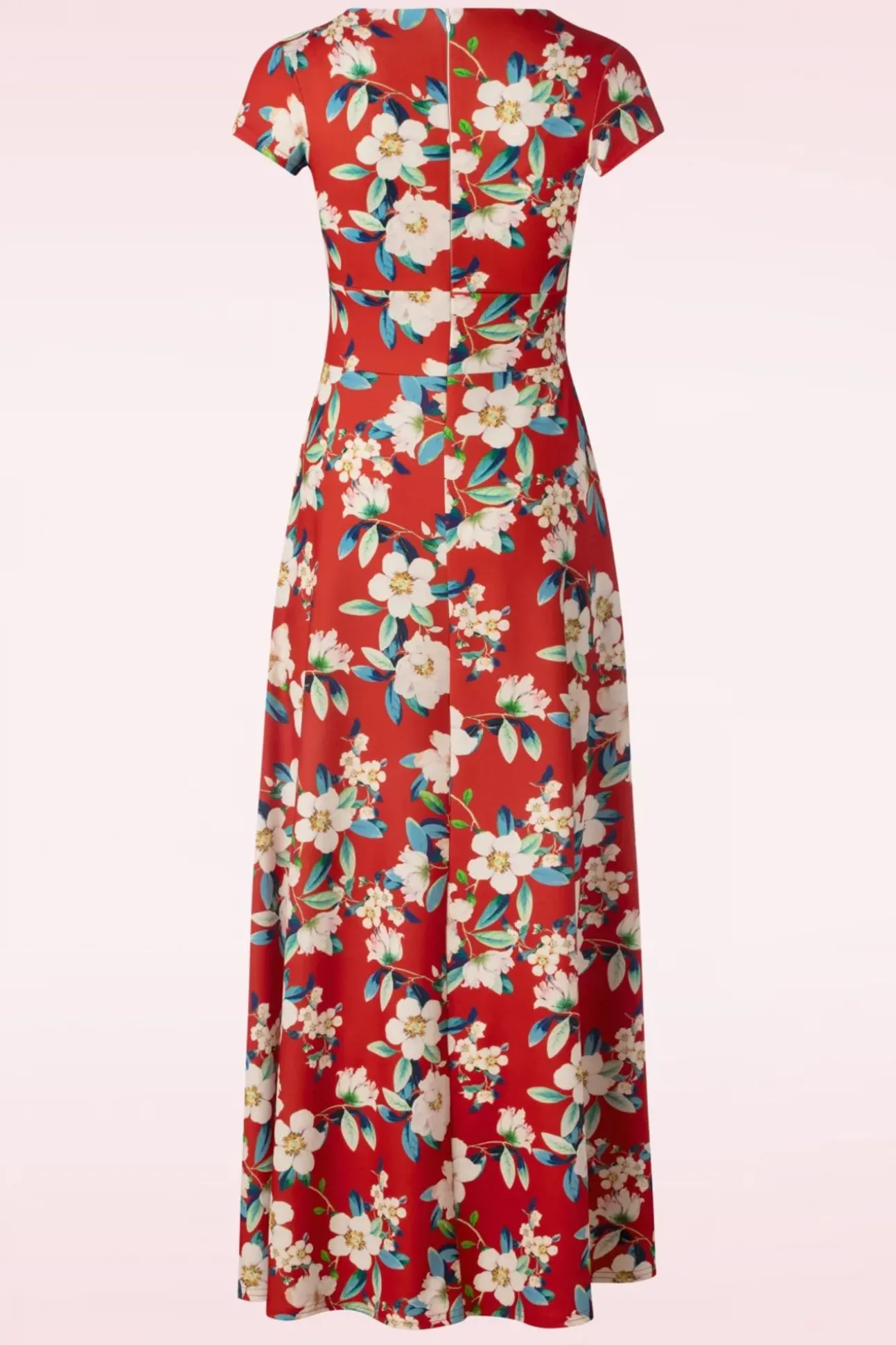“Voel Je Maximaal Speciaal In Rinda!” Uitgevoerd In Een Soepele En Stretchy, Warmrode Crêpe Achtige Stof Met Een Print Van Tropische Bloemen Die Niet Kreukt En Heerlijk Draagt.