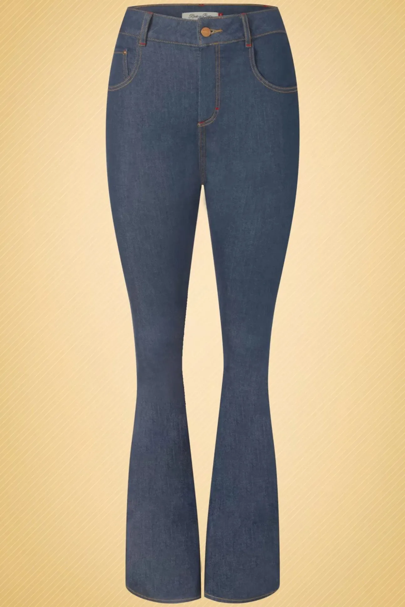 Ons Eigen Merk Rock-A-Booty Staat Bekend Om Haar ‘Unique Blue Dreams’… Deze 50S Rosa Jeans In Denim Blue Is Zo’N Denim Droom Die Uitkomt! Rose Heeft Een Vrouwelijke Hoge Taille, Steekzakjes Aan De Voorzijde, Zakjes Aan De Achterzijde En Wijd Uitlopende Pijpen Die Je Benen Eindeloos Lang Doen Lijken. De Gehele Rock-A-Booty Collectie Is Van Een Hoogwaardige Kwaliteit, Zo Is Ook Deze Denim Beauty Uitgevoerd In Een Prachtige Stevige Denimblauwe Katoenmix (Stretcht Nauwelijks) Die Je Rondingen Perfect Volgt En Is Afgewerkt Met Koperkleurige Knopen En Donkergele Stiksels Voor Die Authentieke Touch. Rosa Has Got Your Back!” En Wij Bedoelen ‘Back’ Letterlijk Want Niemand “Rocks Your Booty Like Rosa Does”! 😉