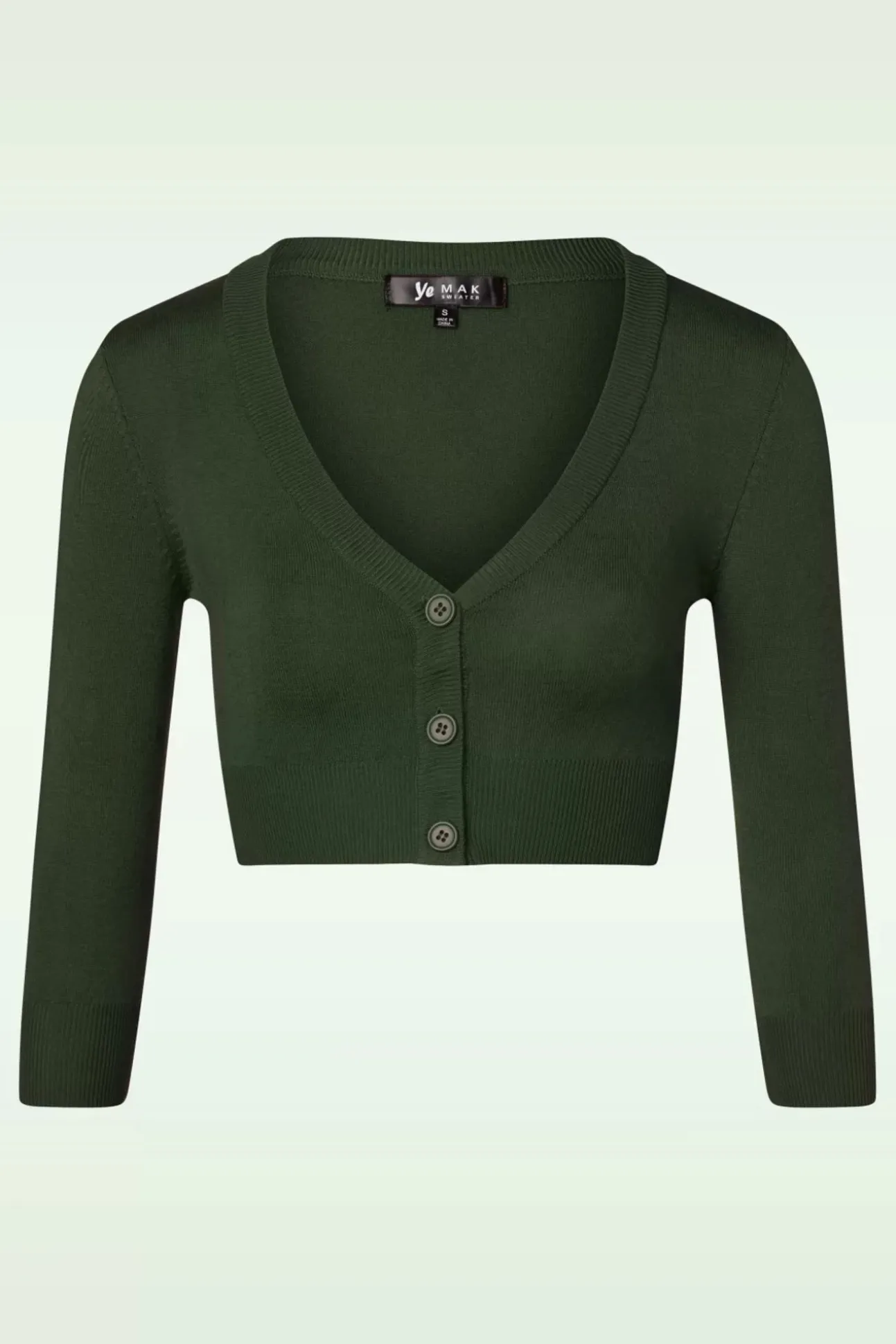 De 50S Shela Cropped Cardigan In Hunter Green Is Een Echte Klassieker… Online In Nederland, Duitsland En Frankrijk Exclusief Verkrijgbaar Bij Topvintage! Classy In Al Haar Eenvoud En Daardoor De Perfecte Match Met Al Jouw Vintage Kledingstukken! Deze Korte Cardi Heeft Een Elegante V-Halslijn, 3/4 Mouwen En Grote Glimmende Knopen. Uitgevoerd In Een Fijngebreide, Zachte, Donkergroene Acrylmix Met Een Heerlijke Stretch Voor Een Mooie Aansluitende Pasvorm. De Combinatiemogelijkheden Zijn Eindeloos!