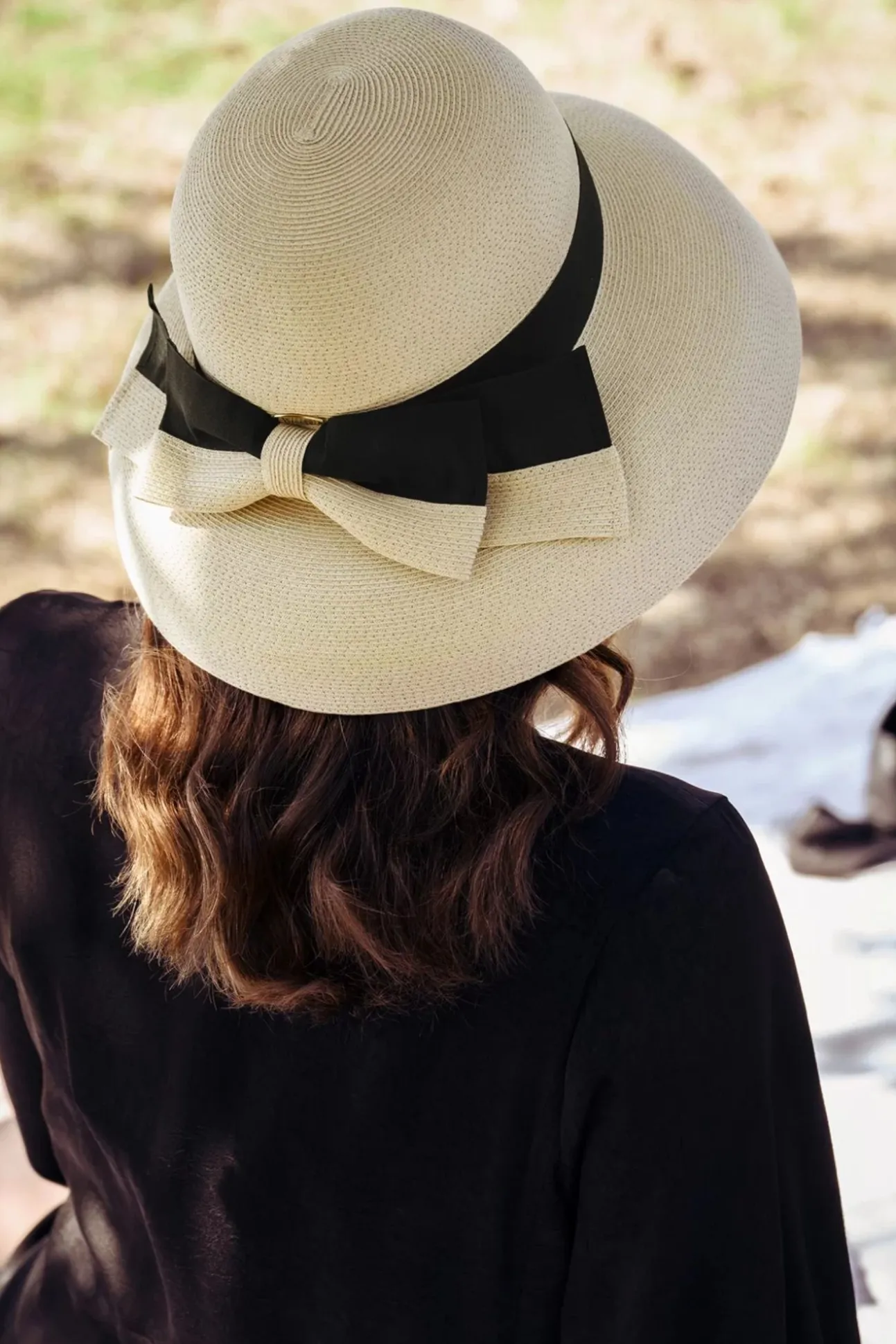 Een Hoed Kan De Vorm Van Je Gezicht Complimenteren En Je (Vintage) Outfit Compleet Maken! Dat Is Precies Wat Deze Tara Hat In Naturel And Black Doet! De Brede Rand Kun Je Omklappen En Biedt Bescherming Tegen De Zon Terwijl Ze Op Charmante Wijze De Focus Legt Op Je Lippen En Nek. Niet Voor Niets Is Deze Hoed Geïnspireerd Op Audrey Hepburn In ‘Breakfast At Tiffany’s’! Gemaakt Van Superfijn, Naturel Gevlochten Materiaal Van Een Zware Kwaliteit, Afgezet Met Een Zwart Lint En Een Sierlijke, Grote Strik. ”For Every Head A Hat!”