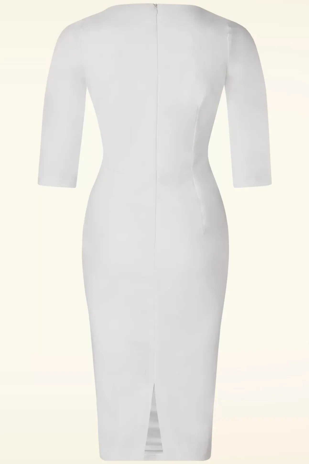 Vier Jij De Grote Dag In The Patrizia Pencil Dress In Wit? Ook Dit Seizoen Hebben Onze Getalenteerde In-House Designers Een Onweerstaanbare Collectie Ontworpen Voor Ons Eigen Merk Vintage Diva! Ze Is Classy En Sophisticated, Vrouwelijk En Toch Heel Sexy Zonder Al Te Veel Prijs Te Geven, Yesss… Patrizia Heeft Alles Wat Wij Diva’s Zoeken In Een Jurk! Uitgevoerd In Een Stevige Maar Soepele, Witte Stof Met Een Lichte Stretch Van Een Luxe Kwaliteit Die Nauw Aansluit Zonder Daarbij Af Te Tekenen. Ook Is Ze Volledig Gevoerd Voor Extra Comfort! “Say ‘Yes’ To Patrizia!”
