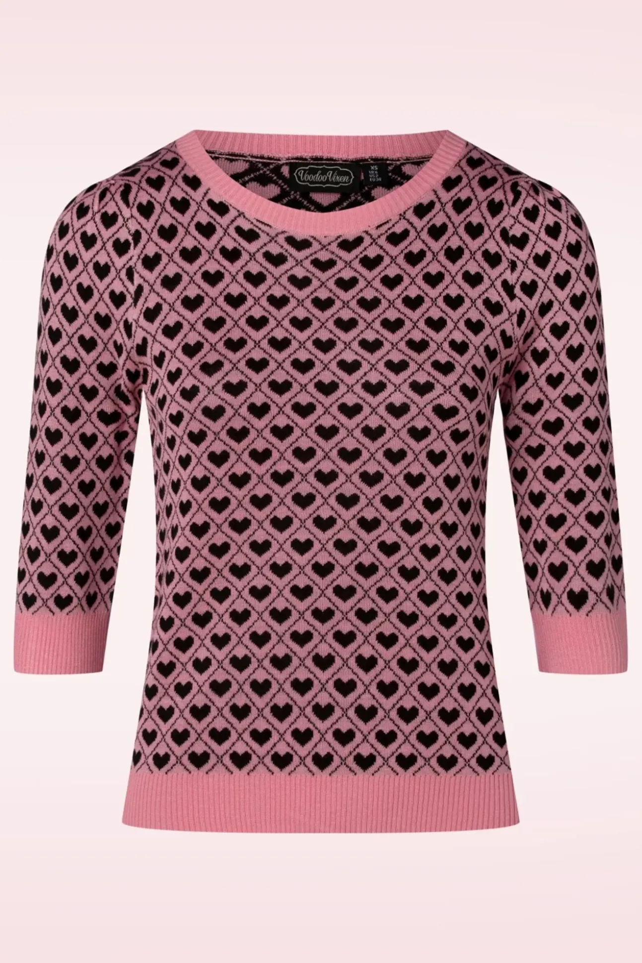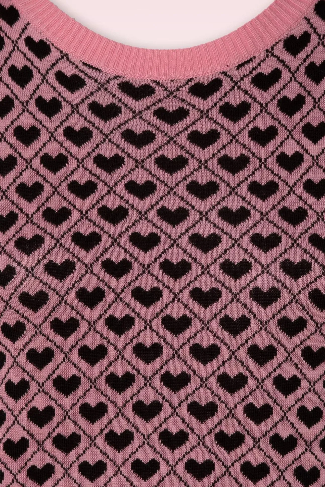 “Love Is In The Air” Met Deze 50S Heart Pattern Sweater In Pink! “Do You Want To Know What Love Looks Like? Just Take A Look At This Cutie” 😉 Ze Heeft Een Ronde Halslijn En Schattige 1/2 Pofmouwen. Uitgevoerd In Een Zachte, Fijngebreide, Stretchy, Roze Viscose Met Een Zwart Geruit Hartjespatroon. En, Al Verliefd?