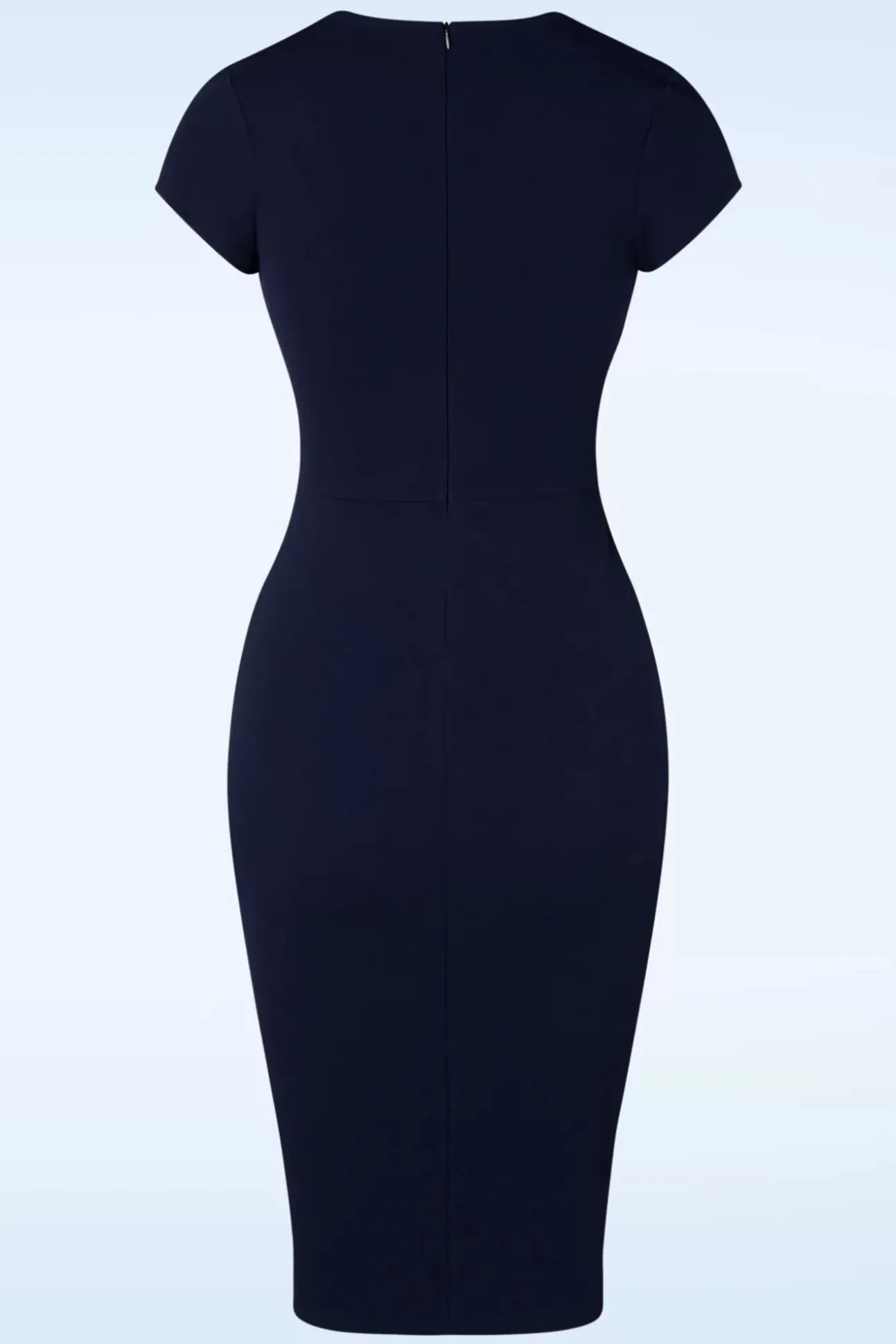 Altijd Al De Perfecte Pencil Dress Willen Bezitten? Dan Is Deze&Nbsp;50S Vivien Pencil Dress In Navy De Ware Voor Jou! De Mooie Overslag Top Is Voorzien Van Platte Plooien, Korte Mouwtjes En En Een Geplooide Tailleband Die Super Flatterend Werkt. Uitgevoerd In Een Prachtige Soepele En Stretchy, Navyblauwe Stof Die Je Rondingen Perfect Laat Uitkomen Zonder Af Te Tekenen. Tijdloos, Klassiek En Altijd De Juiste Keuze…. Fashion Flaters Behoren Tot Het Verleden Met Vivien In Je Kast!
