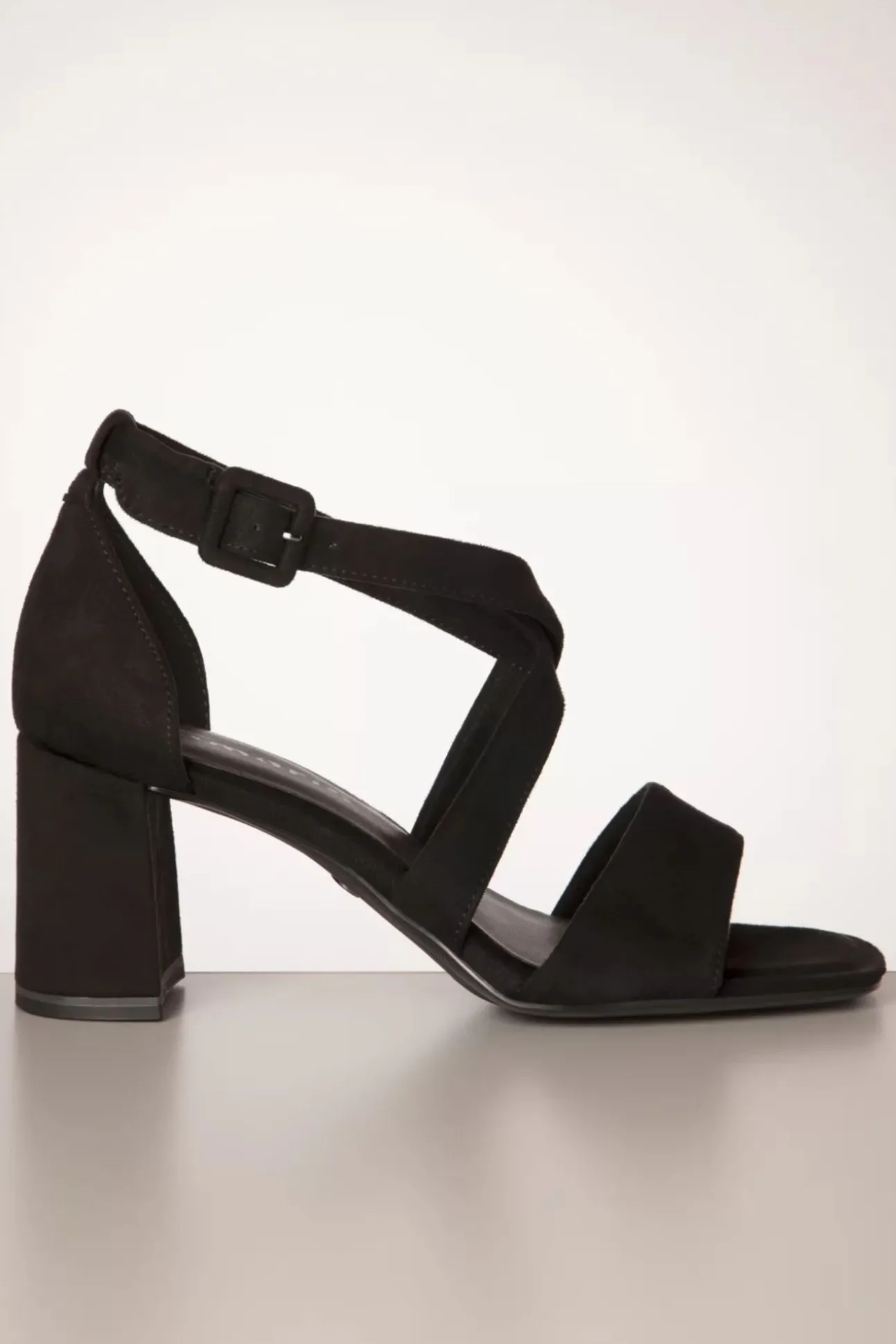 Nieuwe Lente/Zomercollectie ~ ”All Day, Every Day!” Deze Open Sandaaltjes Met Hoge Blokhak Passen Bij Iedere Outfit En Zijn Geschikt Voor Iedere Gelegenheid! Uitgevoerd In Zwart Vegan Suèdine, Afgewerkt Met Gekruiste Bandjes.