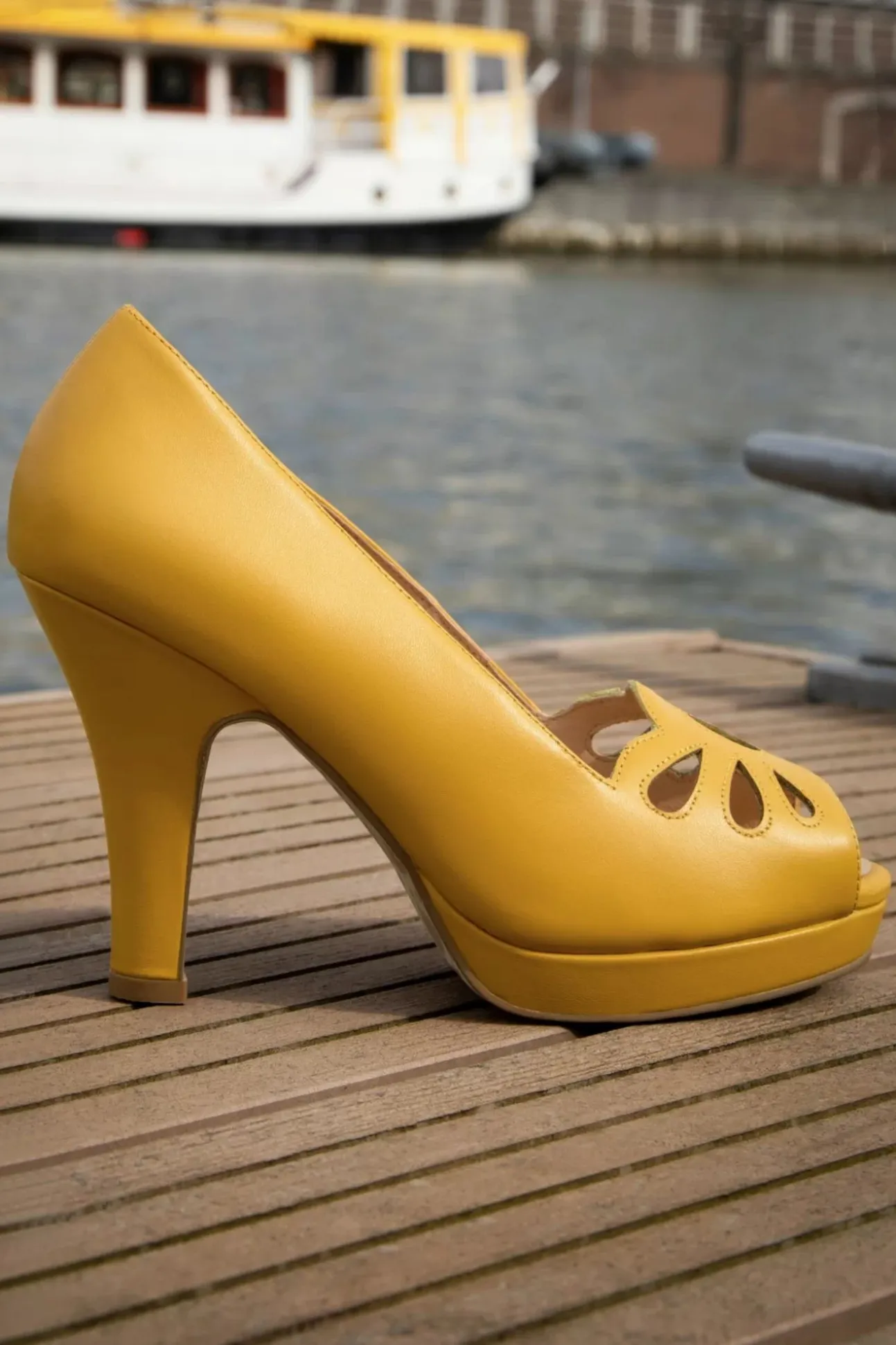 ”Monaco? That’s Not A Place, It’s A Dream!” Topvintage En Lola Ramona Nemen Je Met Deze Collectie Mee Naar De Meest Chique Rivièra’s Van Europa. Deze Angie Monaco Peeptoe Pumps In Mango Mojito Zijn Uitgevoerd In Kwalitatief Hoogwaardig Leder In Mangogeel, Voorzien Van Sierlijke Uitsneden En Een Sexy Peeptoe. De Stevige, Hoge Hak Zorgt Er Samen Met Het Subtiele Plateau En De Zachte Binnenzool Voor Dat Je Urenlang Pijnloos Kunt Genieten Van Deze Cuties Aan Je Voetjes. Ik… De Nieuwe Prinses Van Monaco? Klinkt Best Goed! 😉
