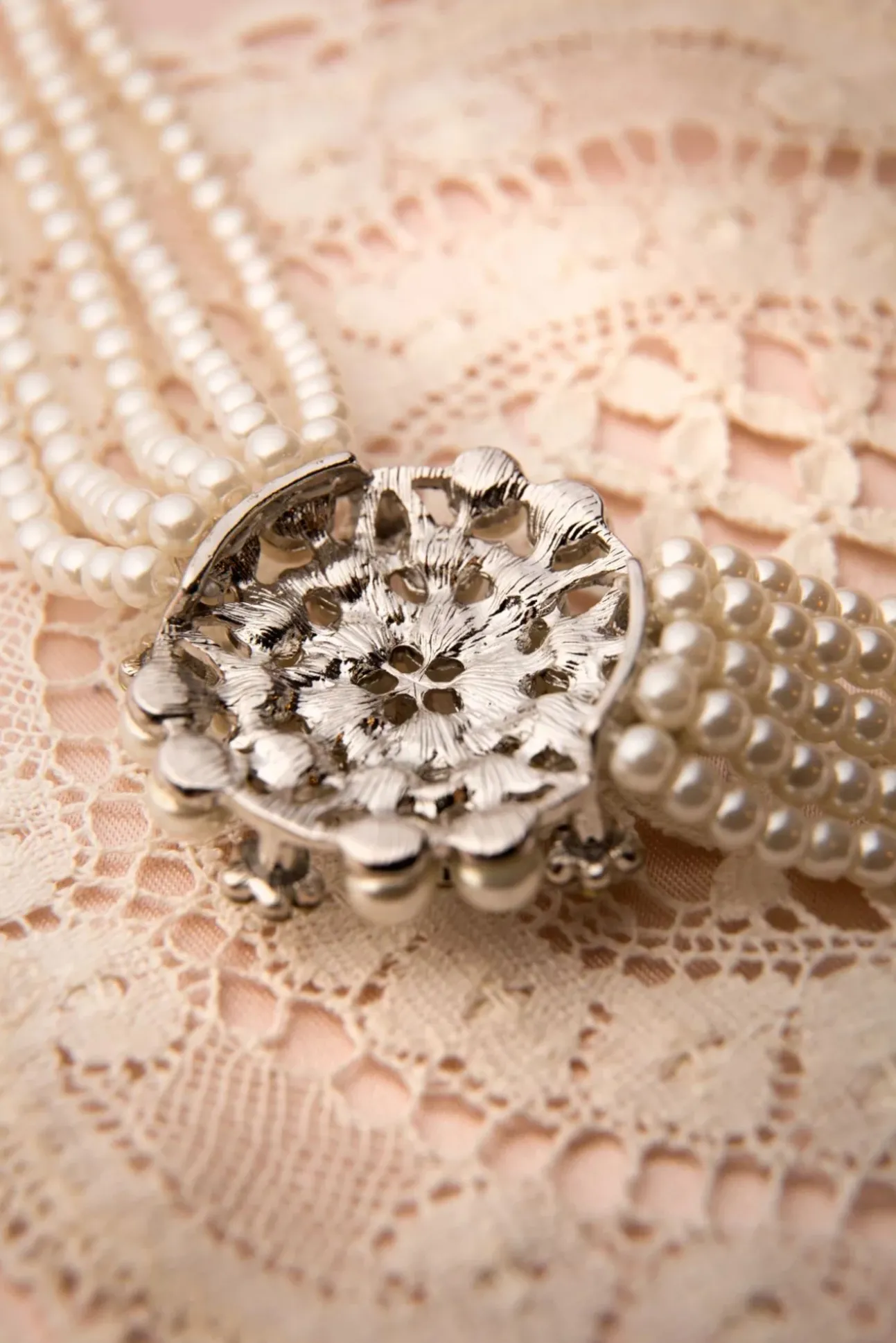 Lovely Sieraden! ~ Deze Audrey Cream Pearl Choker Necklace Is Een Korte Opvallende Ketting Met Classy Parels En Strass Accenten.