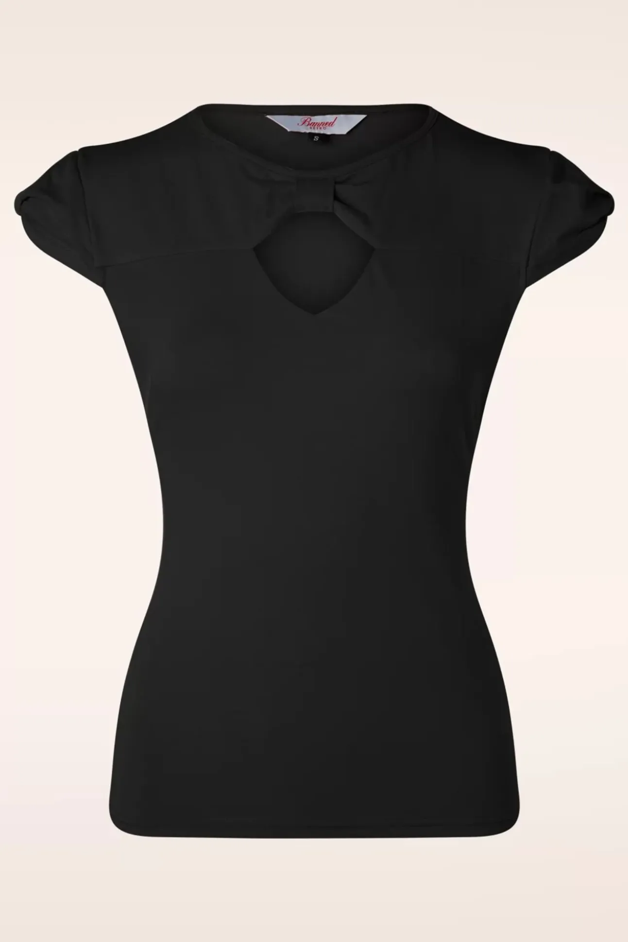 Deze Prachtige 50S Be Free Jersey Top In Zwart Past In Iedere Garderobe… Of Je Nu Een Pin-Up Girl, Rockabella Of Vintage Vixen Bent! Ze Heeft Een Ronde Halslijn Met Een Keyhole En Strikdetail En Schattige Opengewerkte Kapmouwtjes. Uitgevoerd In Heerlijk Soepel En Stretchy Katoen In Zwart Dat Zijn Perfecte Pasvorm Zal Blijven Behouden, Zelfs Na Een Aantal Wasbeurten. L-O-V-E!