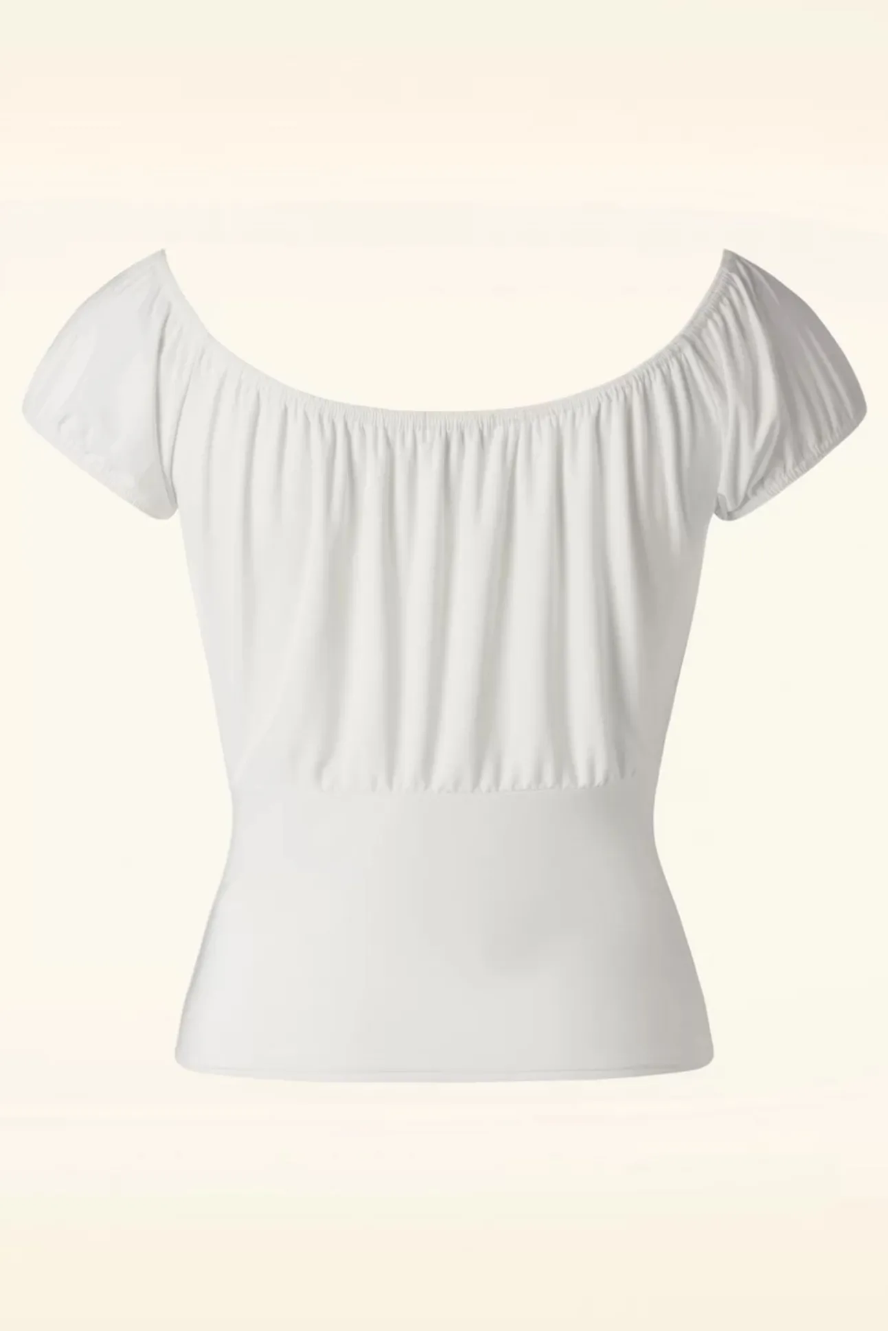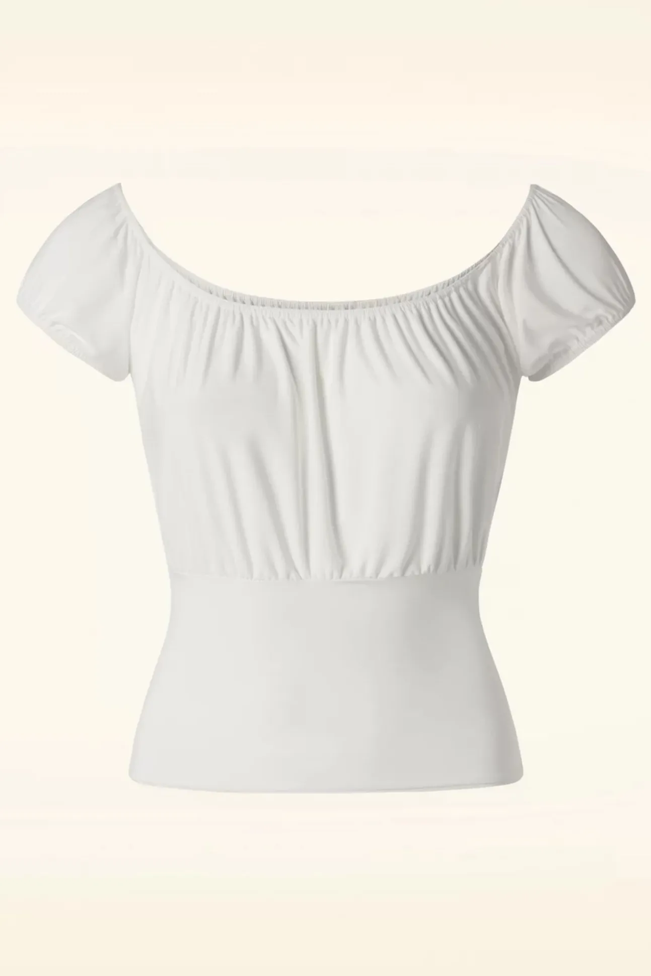 ”show Those Sexy Shoulders, Baby!” Deze Beauty Heeft Een Geplooide Buste En Korte Mouwtjes Met Elastiek Die Off Shoulder Gedragen Kunnen Worden. Uitgevoerd In Een Glad En Soepel, Stretchy, Ivoorwit Slinky Stofje Dat Heerlijk Draagt!