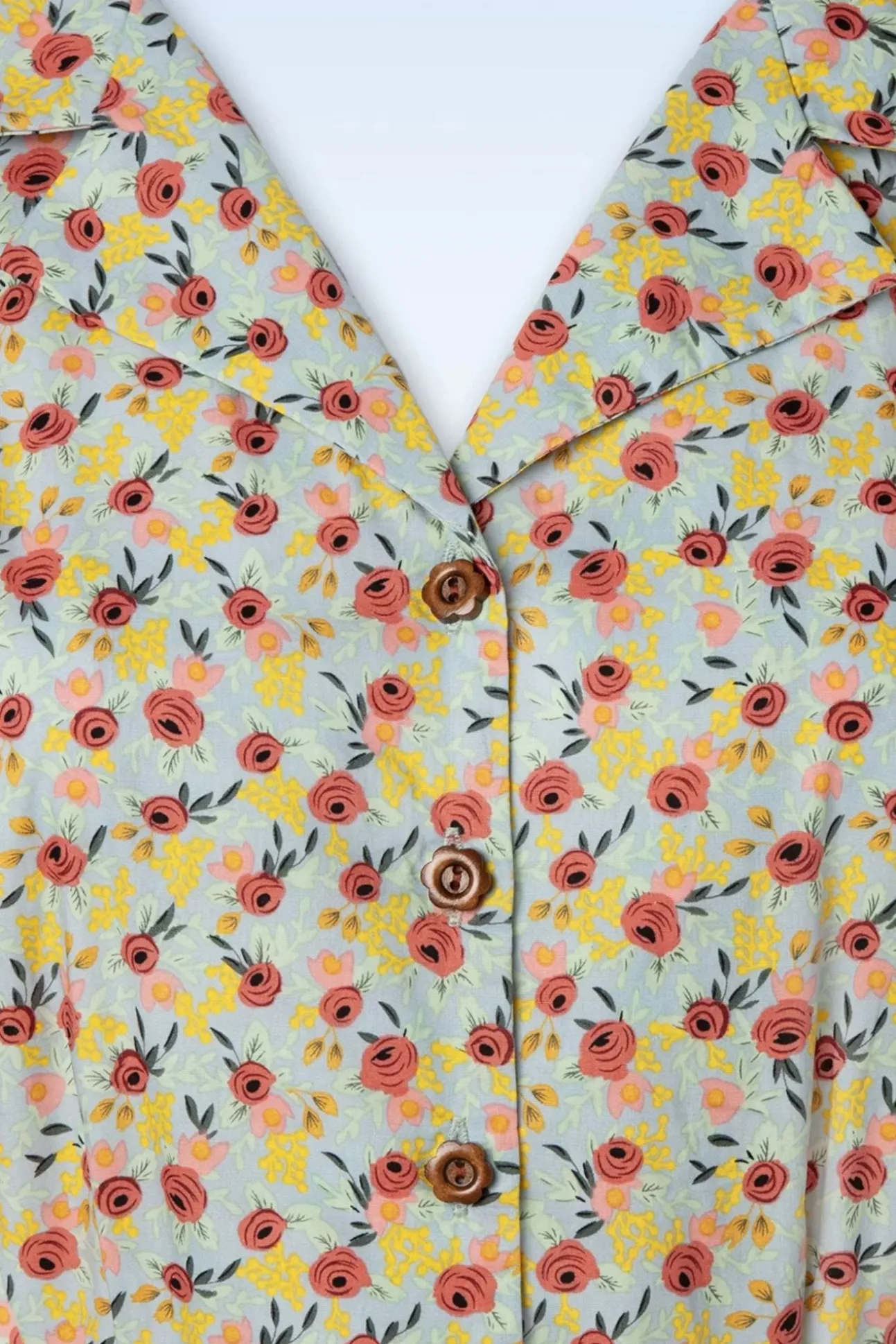 Deze Blooming Swing Dress In Blue Tovert Een Lach Op Je Gezicht! Deze Prachtige Blouse-Jurk Met Bloemvormige Houten Knoopjes Draag Je Het Liefst De Hele Dag. Haar Elegante V-Halslijn, Reverskraagje, Korte Mouwen En Riempje Dat Jou Een Prachtig Vrouwelijk Silhouet Geeft, Laten Jou Op En Top Vrouw Voelen. Uitgevoerd In Een Soepele En Luchtige Katoen (Stretcht Niet) Met Een Kleurrijke Bloemenprint. Met Deze Beauty Ben Je Zeker Klaar Voor De Zomer!