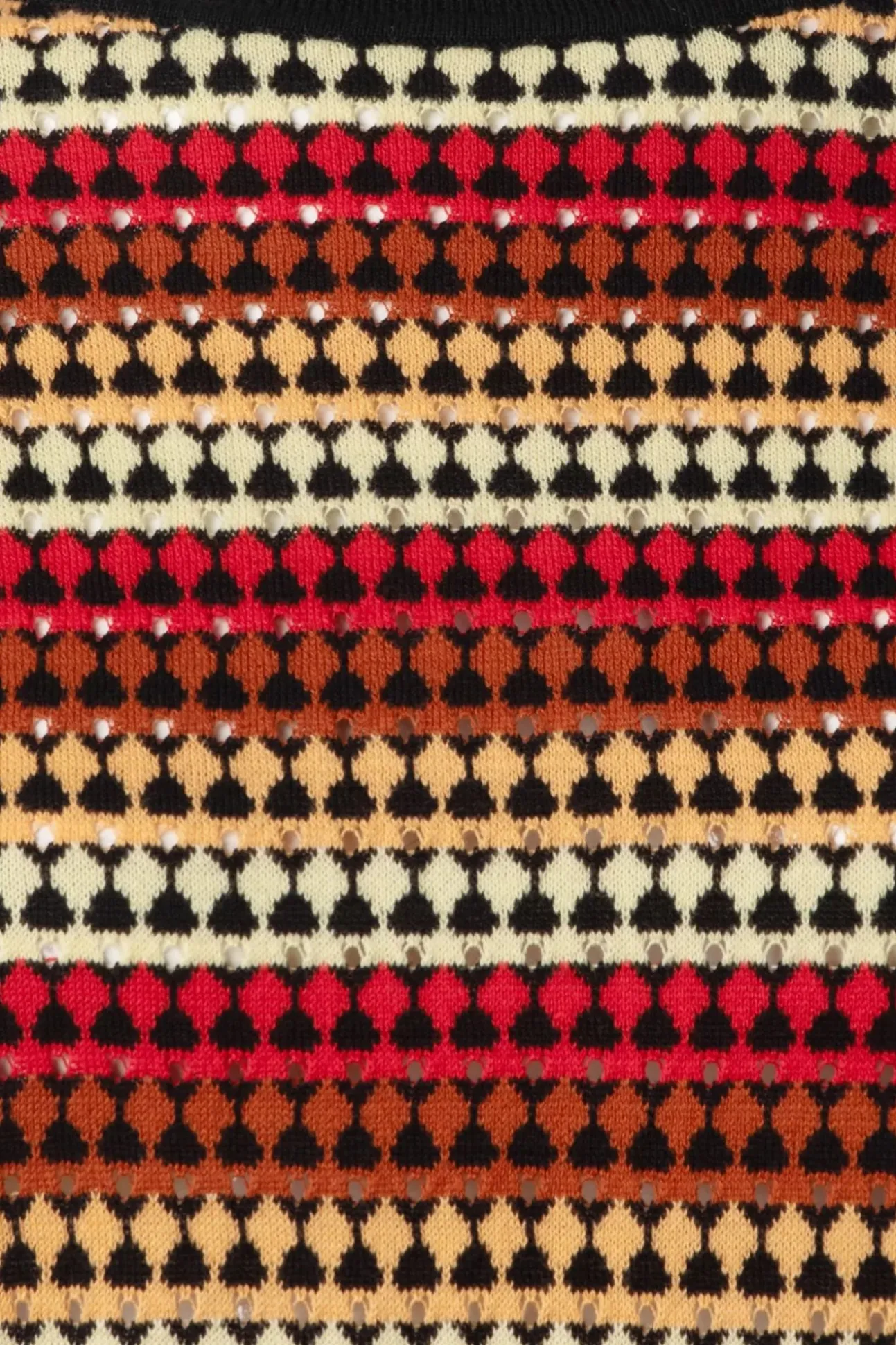Hoe Mooi Is Deze Knitted Top?! Ze Is Uitgevoerd In Een Soepele En Stretchy, Fijn Gebreide, Opengewerkte, Kleurrijke Bio Katoen Die Heerlijk Draagt. “Preppy But Cute, Just The Way We Like It!”