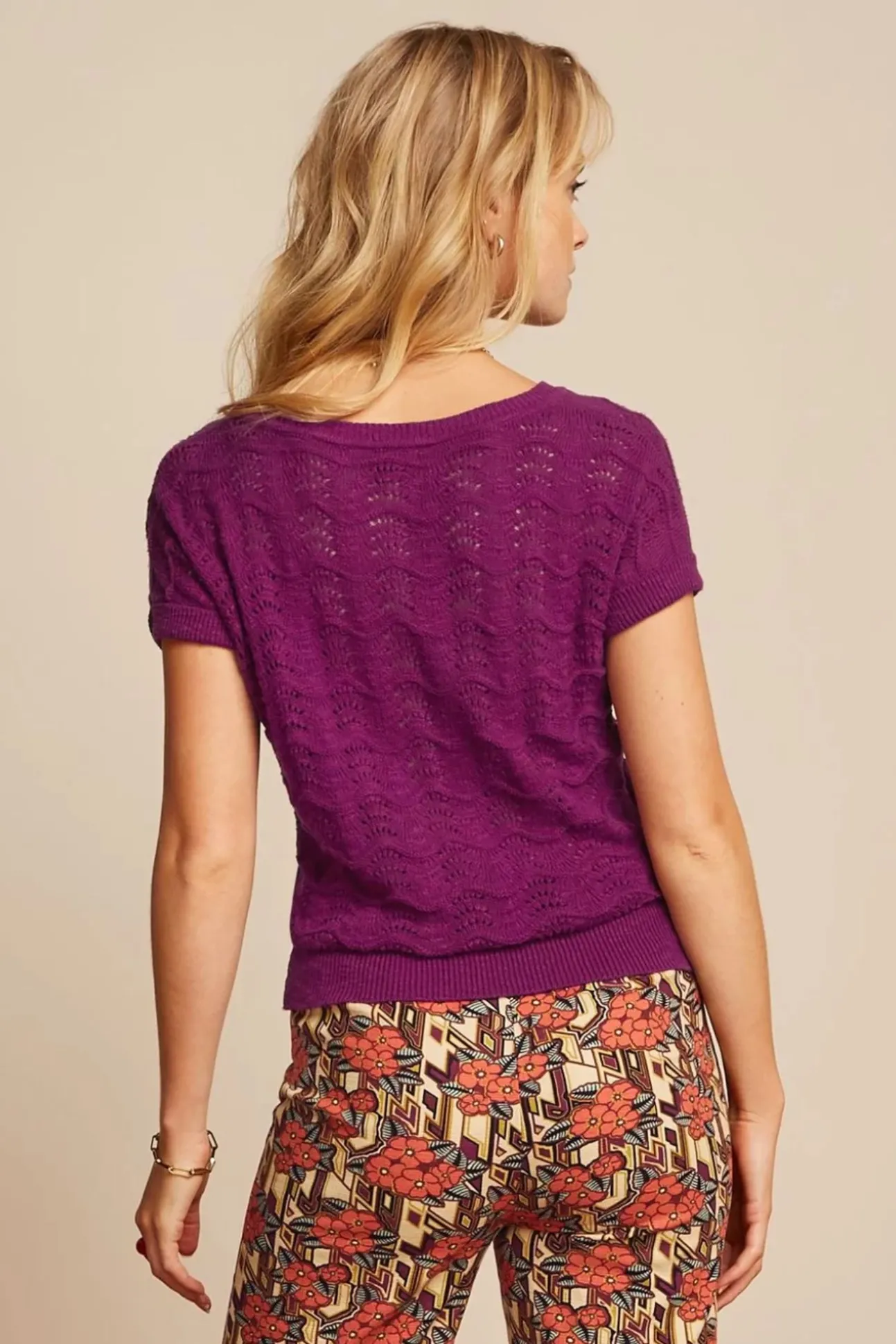 Simple But Effective! Ze Is Super Veelzijdig En Draagt Comfortabel Dankzij De Zachte, Stretchy En Fijngebreide Paarse 100% Katoen, Tevens Voorzien Van Een Opengewerkt Ajourpatroon.