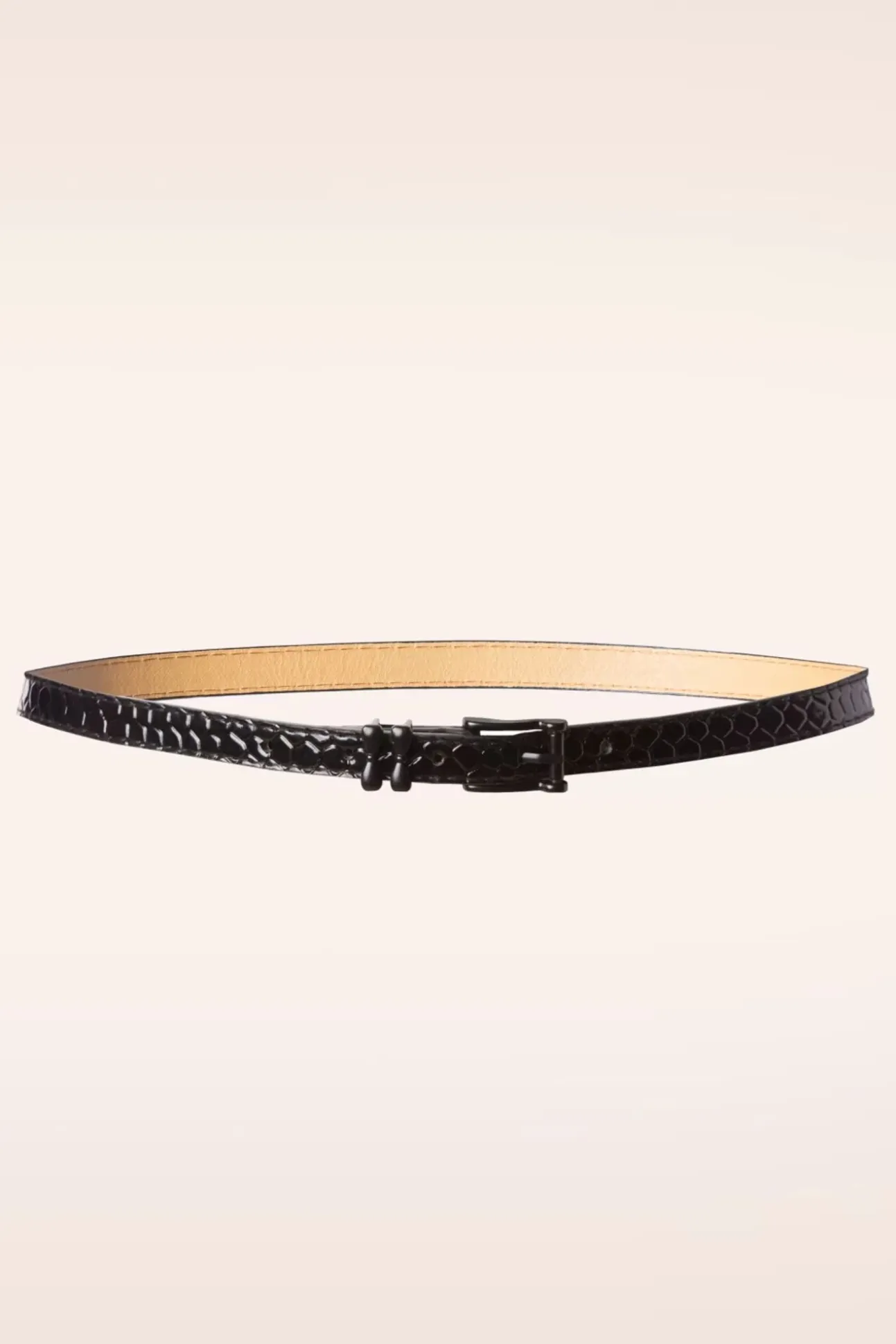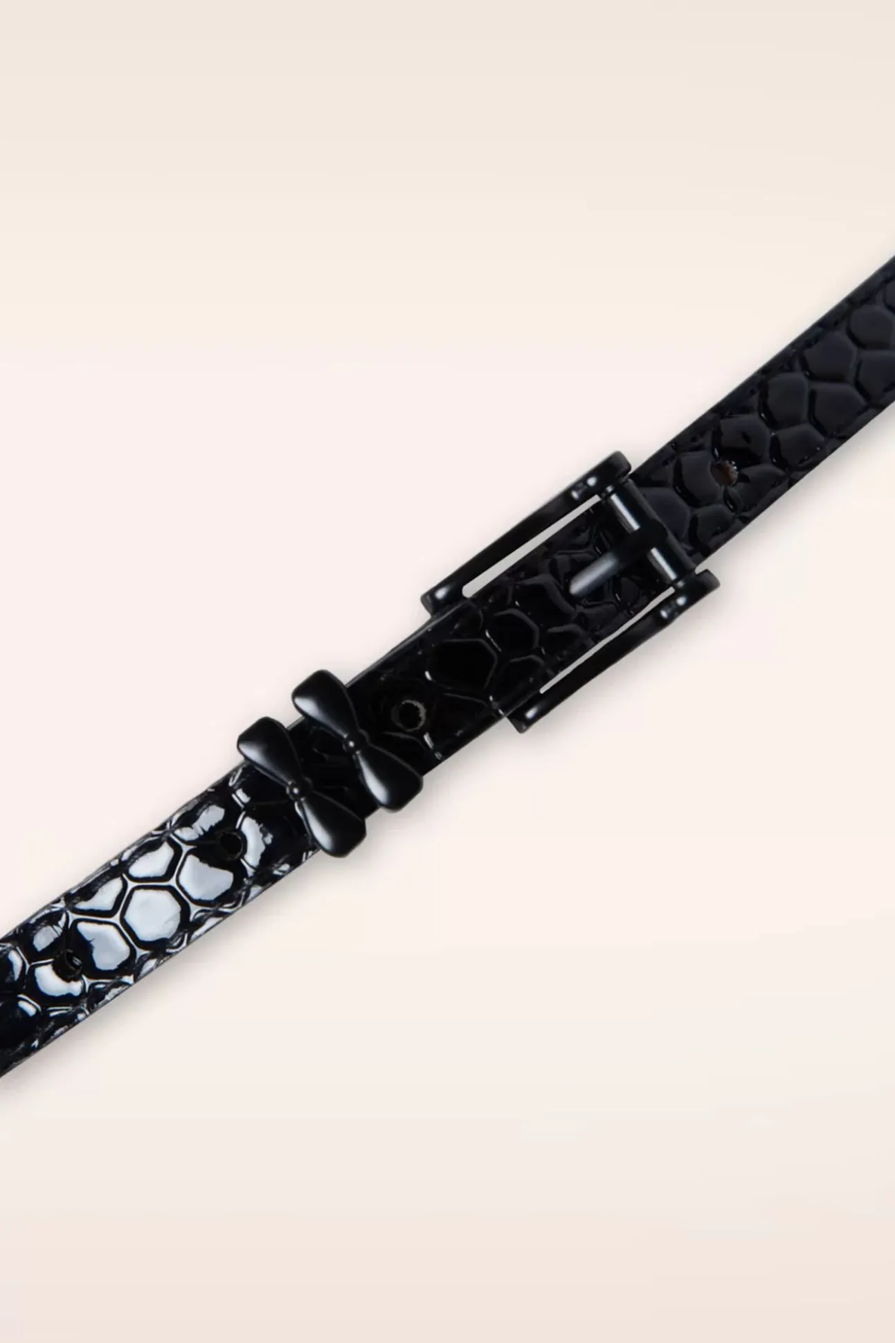 Onze 50S Cecile Beltin Crocodile Black Is Een Classy Riem Die Elke Outfit Een Subtiele Vintagetouch Geeft! Deze Smalle, Verstelbare Ceintuur Is Uitgevoerd In ‘Faux’ Krokodillen Lakleder, Afgewerkt Met Een Zwart Gespje In De Vorm Van Tweekleine Strikjes… Très Chic! Een Veelzijdige Beauty Die Eigenlijk Overalbij Past; Die Wil Je Toch Niet Missen In Je Collectie? Dus Voorkomkrokodillentranen En Bestel Haar Nu Het Kan! 😉