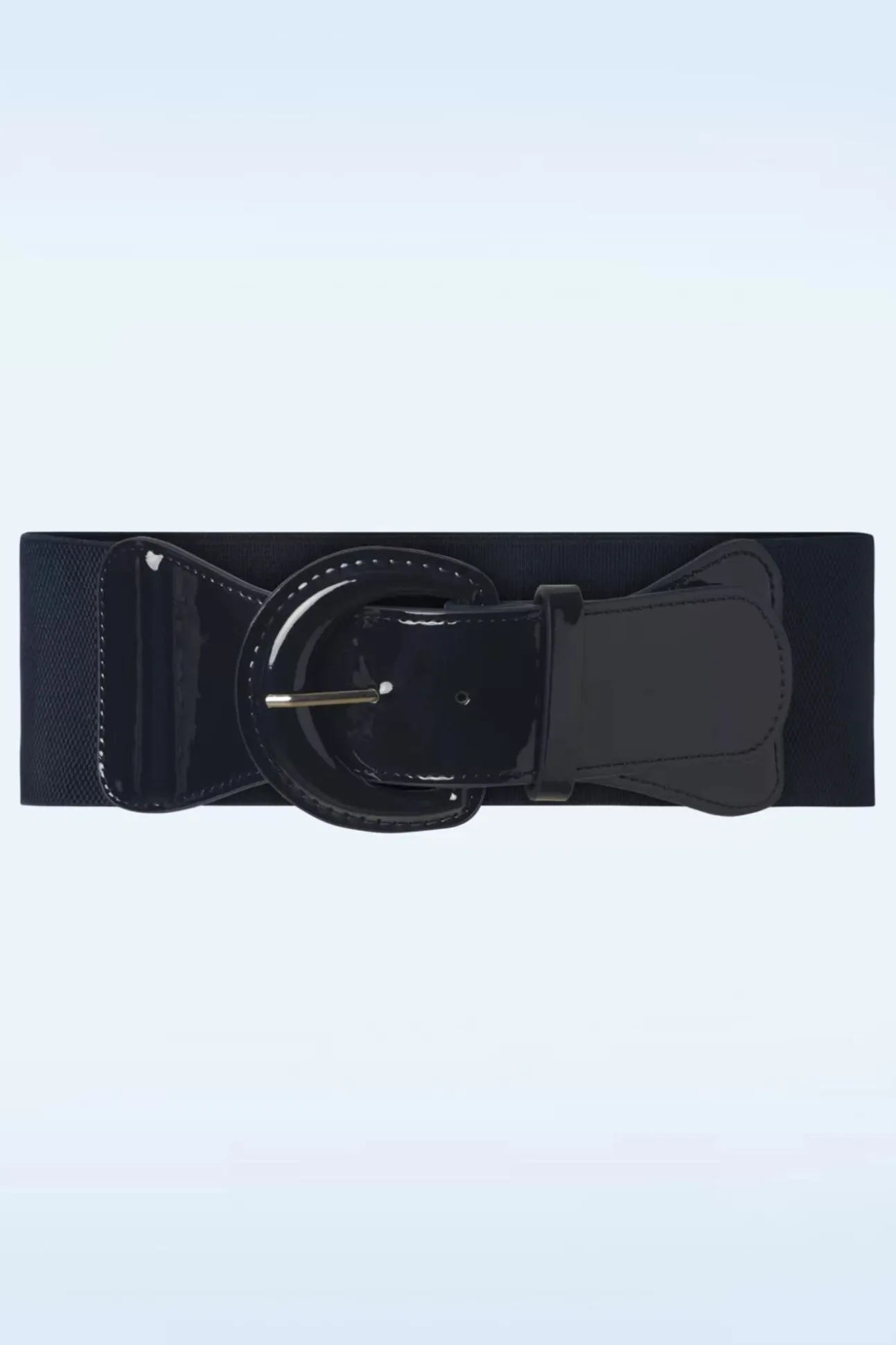 Met Deze Corinne Elastic Riem In Navy Creëer Je Een Prachtige Look In Een Handomdraai! Uitgevoerd In Donker Navyblauw ‘Faux’ Lak Leder Met Een Ronde Vintage Stijl Gesp En Een Comfy Elastische Band. Je Mag Trots Zijn Op Je Silhouet!
