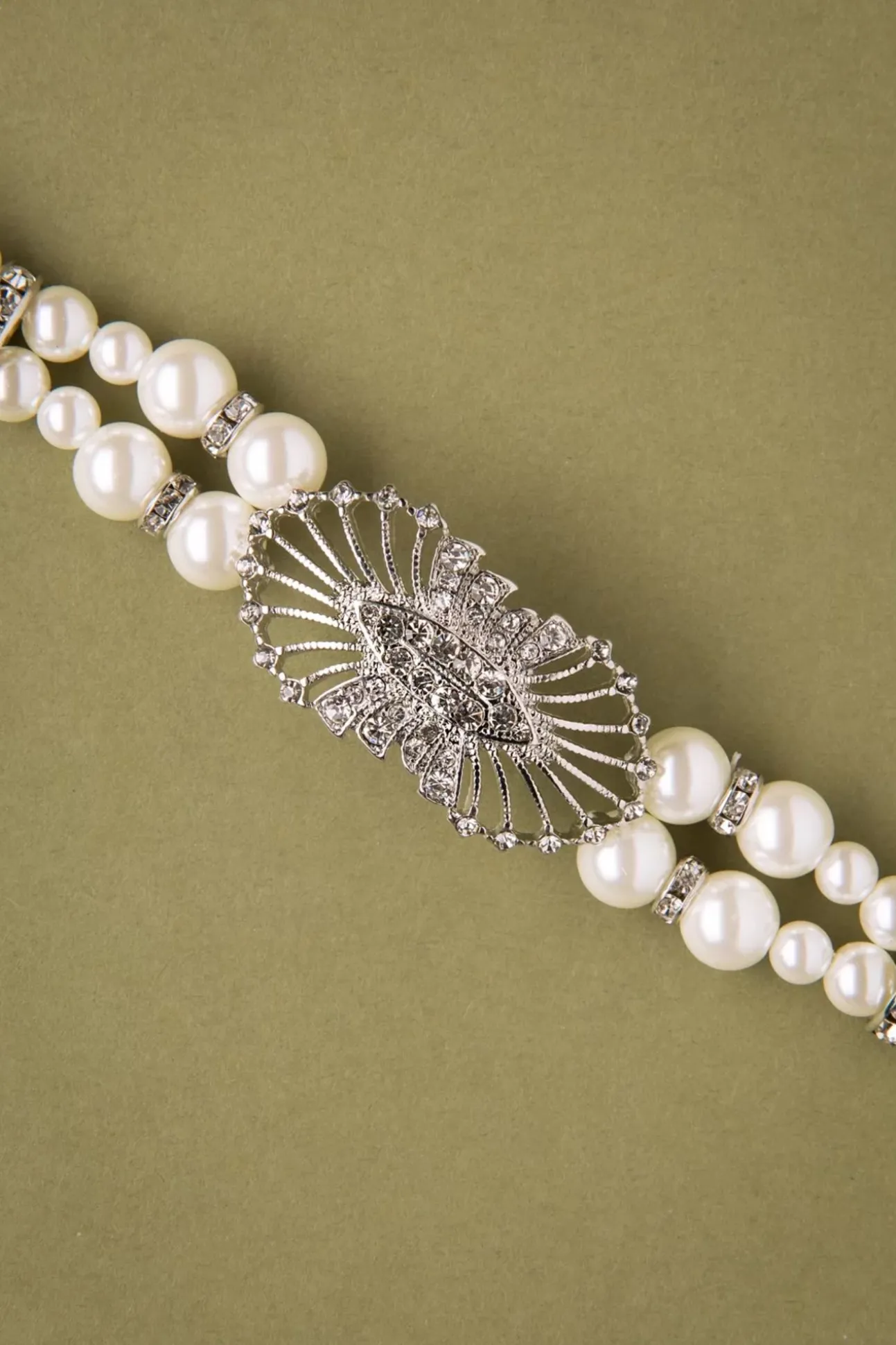 Deze 20S Deco Pearl Bracelet In Ivory Is Een Pronkstuk Dat Je Voor Altijd Bij Je Zal Dragen! Geïnspireerd Op De Roaring Twenties En Uitgevoerd In Zilverkleurig Metaal, Top Kwaliteit ‘Faux’ Parels En Fonkelende Strass Steentjes. Het Hartvormige Bedeltje Maakt Het Geheel Helemaal Af. Ga Terug In De Tijd En Maak Je Great Gatsby Look Af Met Deze Oogverblindend Mooie Armband!